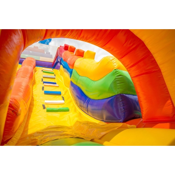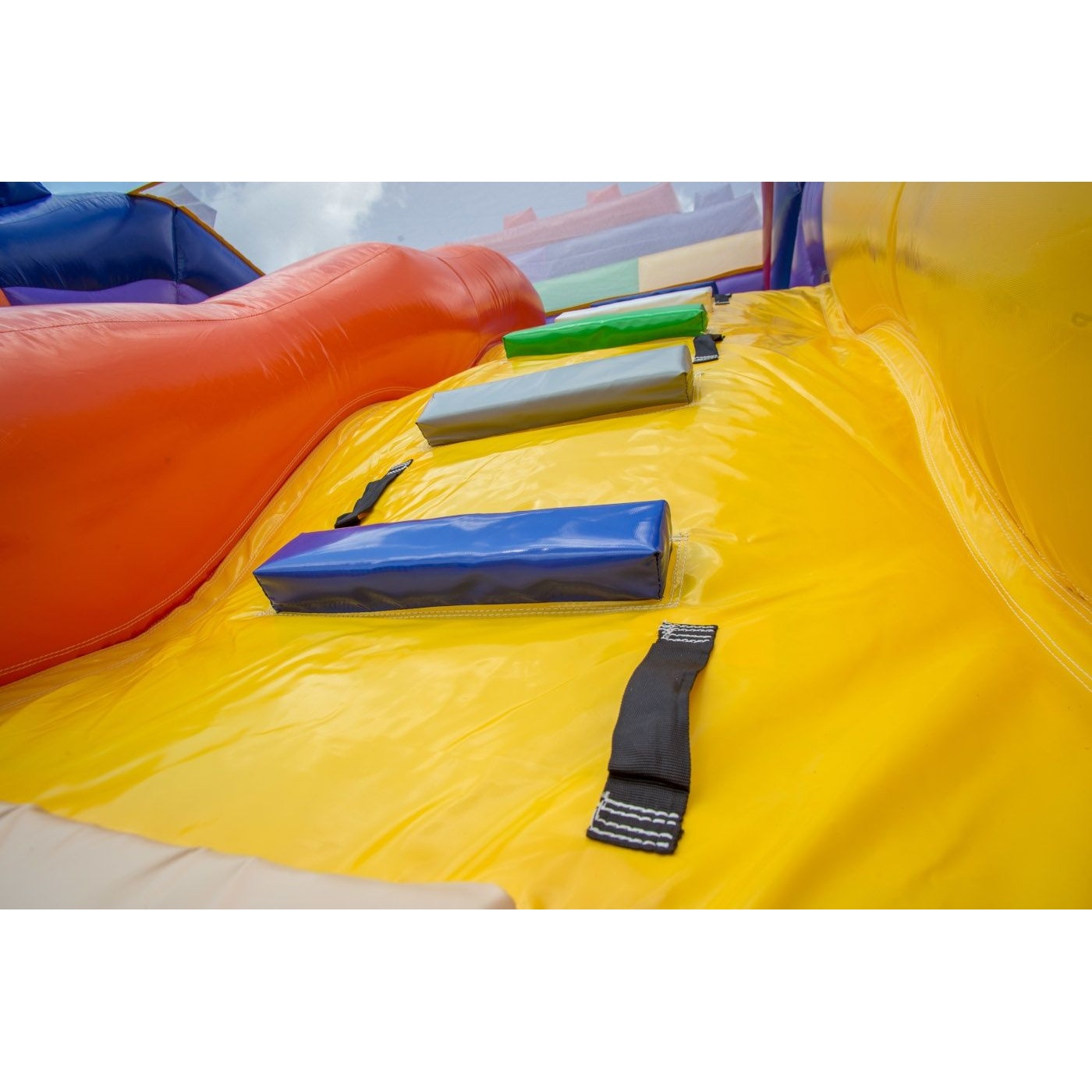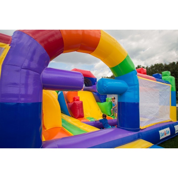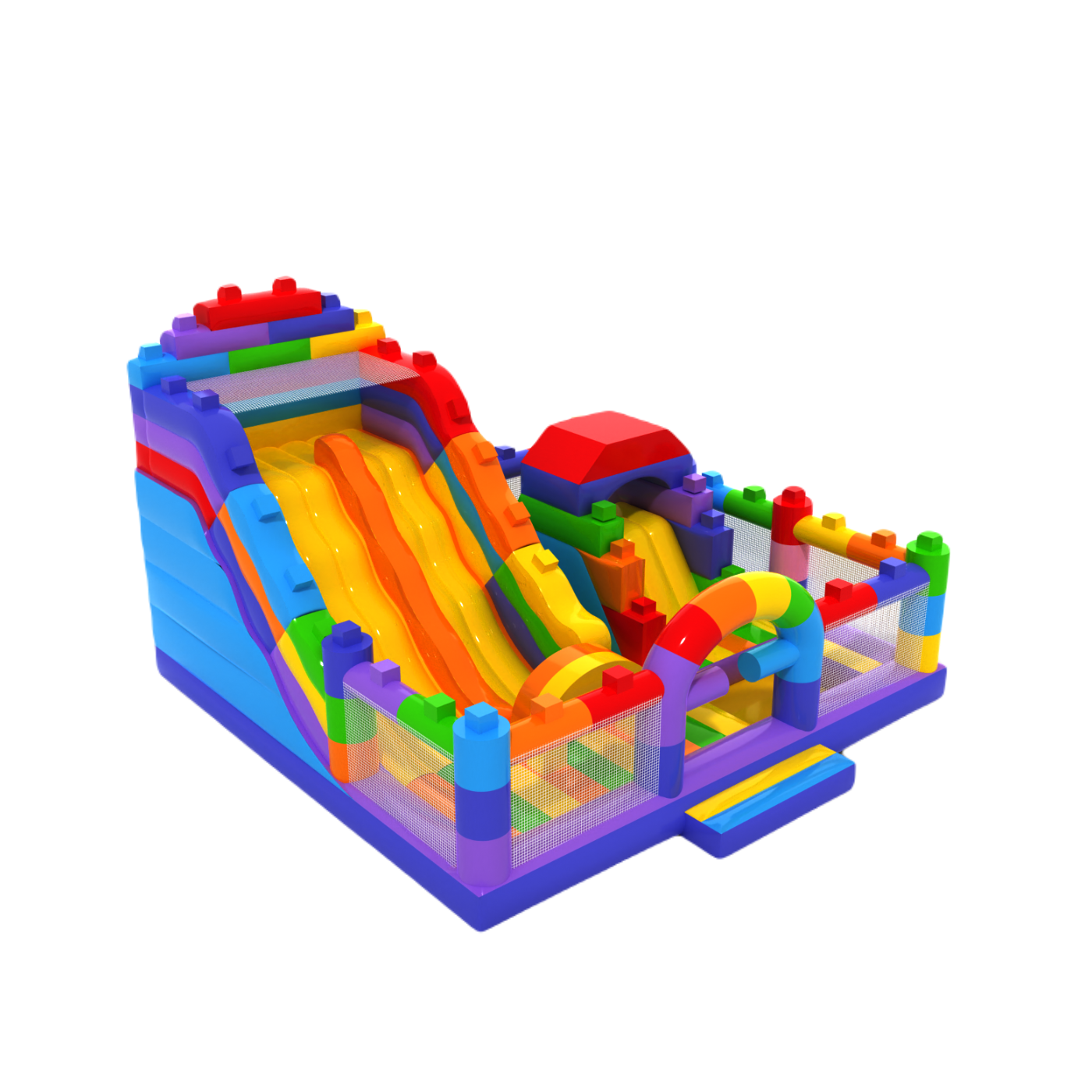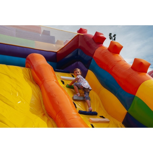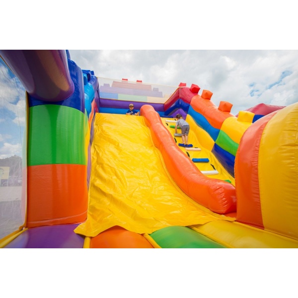 A felfújható csúszdás "Colored blocks combo MAXI" egy látványos attrakció, amely a szórakozást a következő szintre emeli! Nagyméretű és színes szerkezetének köszönhetően a gyerekek biztonságos és szórakoztató környezetben ugrálhatnak, csúszhatnak és végtelen kalandokat élhetnek át. Ideális mindenféle rendezvényre, a születésnapi partitól a családi piknikig, ez a felfújható játék felejthetetlen szórakozási és tevékenységi pillanatokat biztosít a kicsiknek és szüleiknek egyaránt!