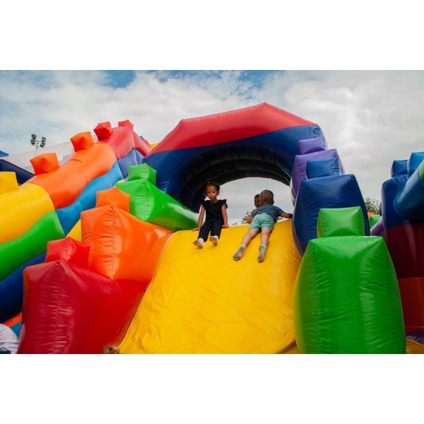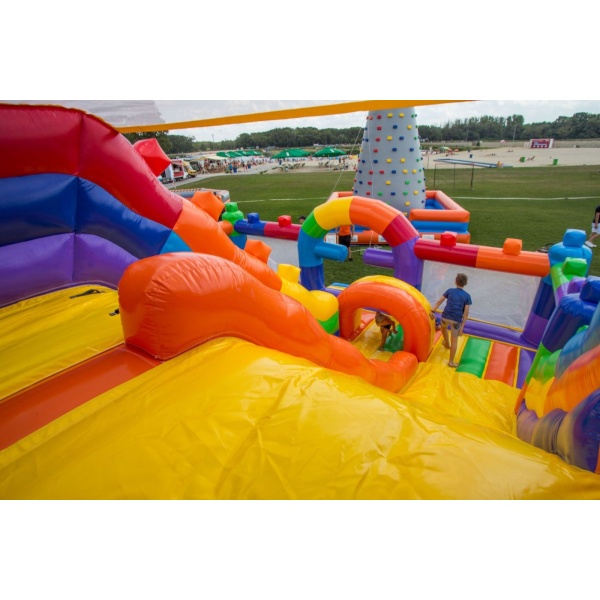 A Felfújható csúszdával - Színes blokkok kombinációja MAXI elsősorban azoknak a gyerekeknek készült, akik kalandra vágynak barátaikkal és kortársaikkal való játék közben. A felfújható játszótér körülkerített és puha felületű, így használata teljesen biztonságos. Rendszerint egy nagyobb és egy kisebb csúszda található benne, ezért különböző korú gyerekek is élvezettel játszhatnak rajta. A Felfújható csúszdával - Színes blokkok kombinációja MAXI kiválóan alkalmas családi piknikekre, csapatépítő vagy céges rendezvényekre és más típusú eseményekre – legyenek azok szabadtériek vagy beltériek. A felfújható játszóterek remek alternatívát jelentenek a nagyobb és igényesebb felfújható attrakciókkal szemben. Különösen ajánljuk ezt az attrakciót kezdő vállalkozások számára.