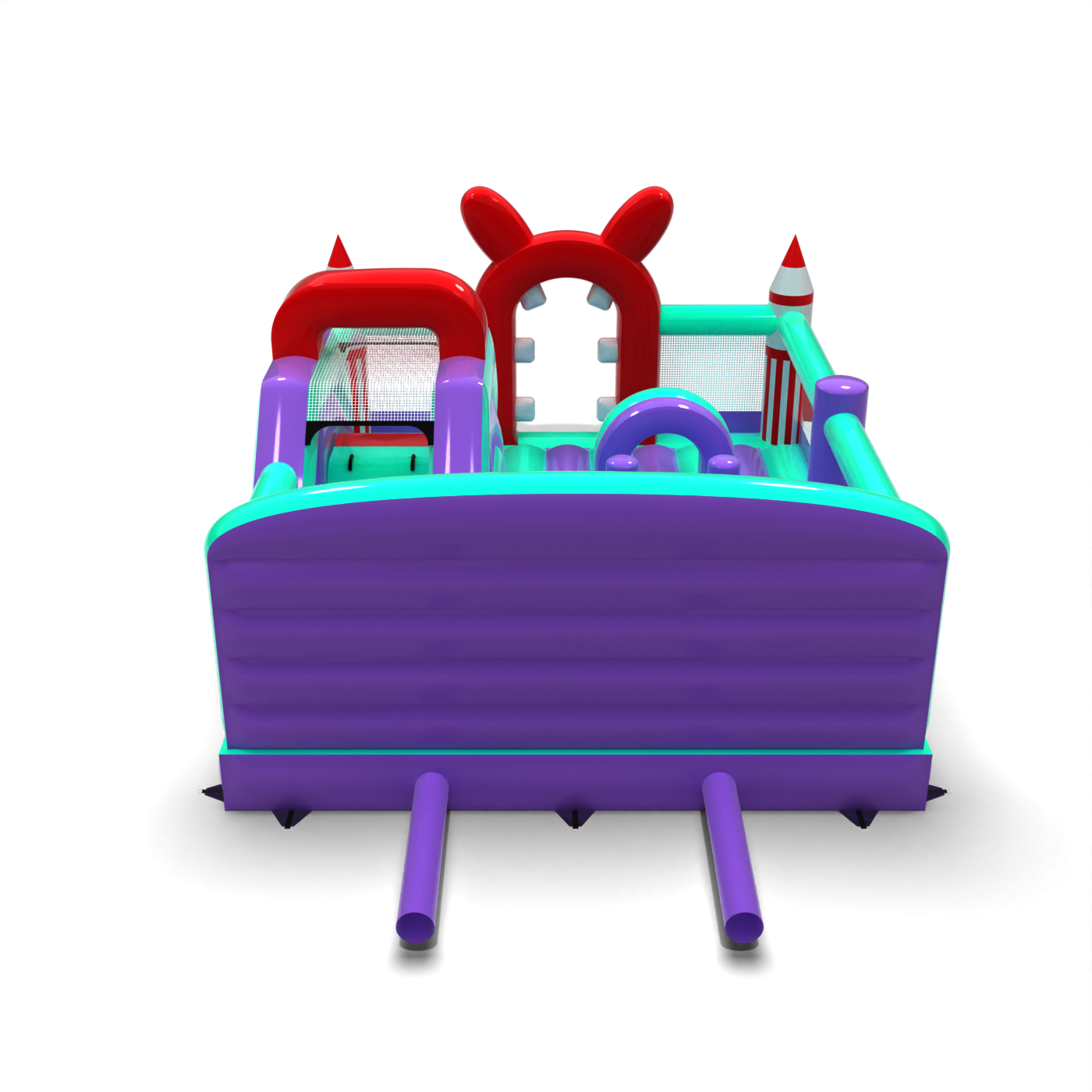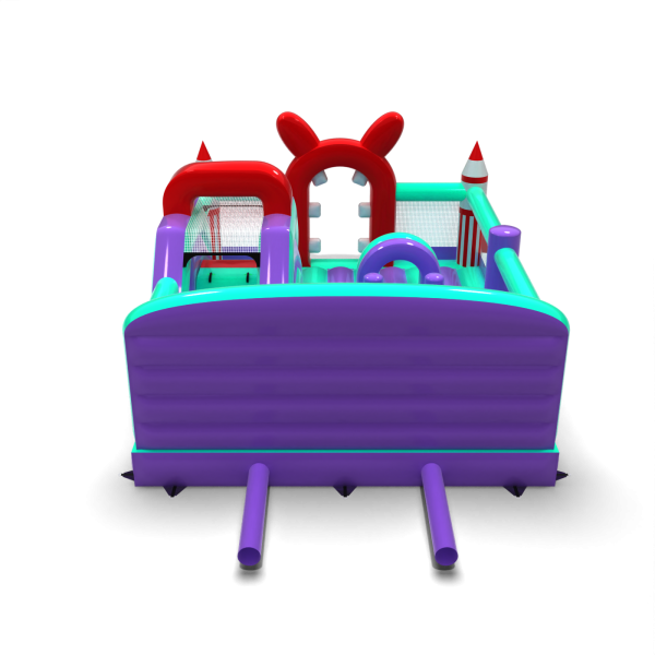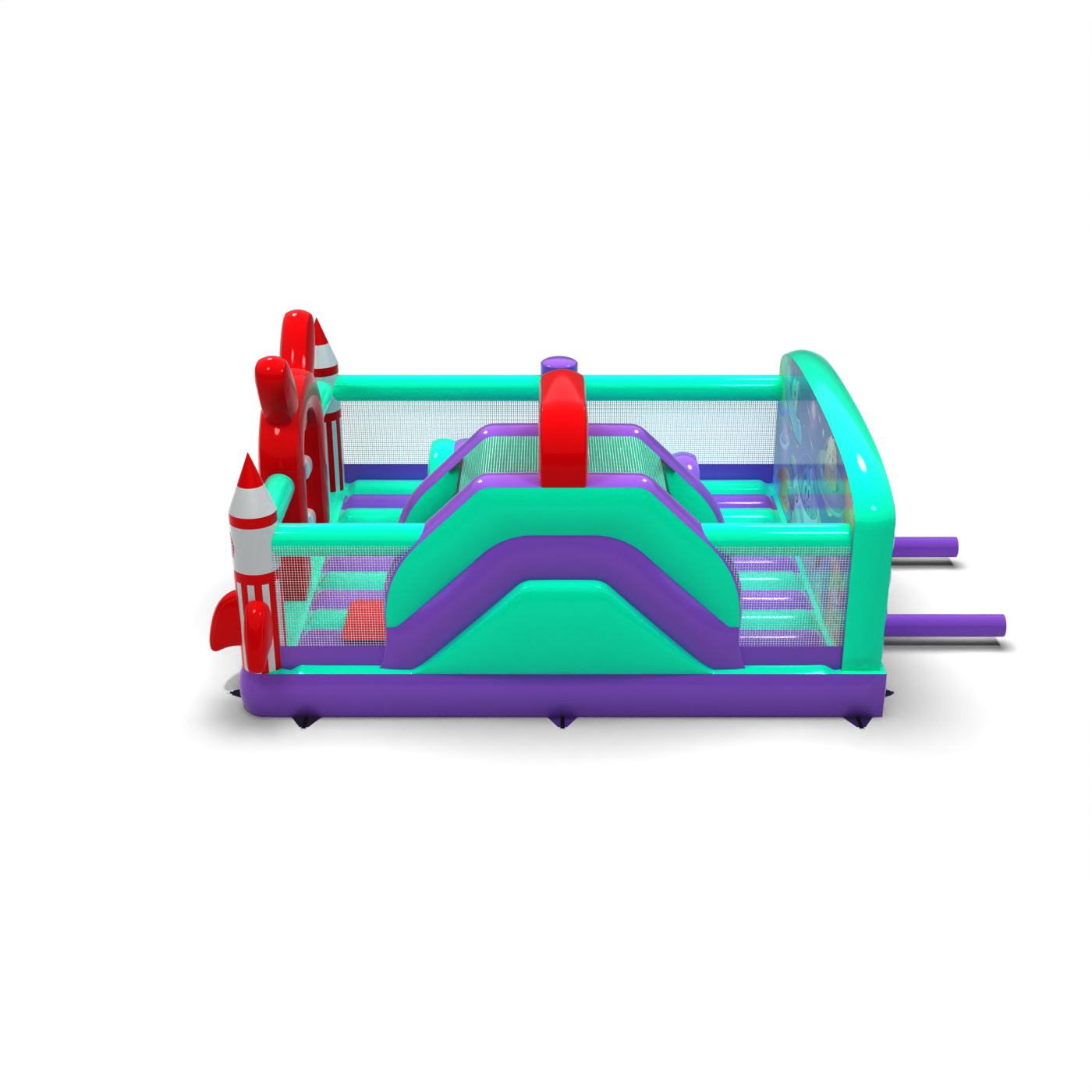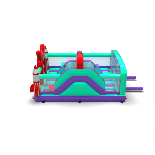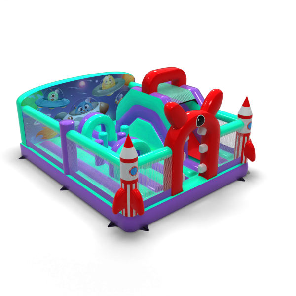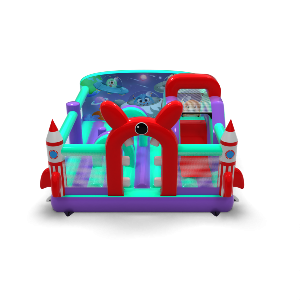 A színes, részletesen kidolgozott, űr témájú játszótér tökéletes attrakció a gyermekek számára minden rendezvényen. Az akadályokkal és csúszdával ellátott dinamikus aktivitási zóna lehetővé teszi, hogy egyszerre több résztvevő is szabadon játszhasson. A figyelmet a mosolygó idegeneket, rakétákat és bolygókat ábrázoló meseillusztrációk hívják fel a figyelmet, amelyek varázslatossá varázsolnak minden rendezvényt. A szerkezet megfelel a biztonsági előírásoknak, és intenzív használatra alkalmas - szabadtéri rendezvényeken és csarnokokban egyaránt. Ideális választás játszóterekre, fesztiválokra és kereskedelmi bérbeadásra.