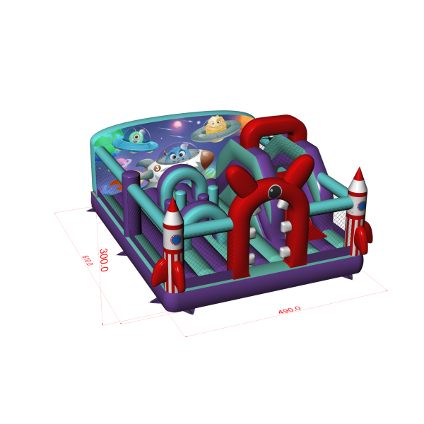 A Felfújható játszótér 6x5 - Űrtémájú kombináció elsősorban azoknak a gyerekeknek készült, akik kalandra vágynak barátaikkal és kortársaikkal való játék közben. A felfújható játszótér körülkerített és puha felületű, így használata teljesen biztonságos. Rendszerint egy nagyobb és egy kisebb csúszda található benne, ezért különböző korú gyerekek is élvezettel játszhatnak rajta. A Felfújható játszótér 6x5 - Űrtémájú kombináció kiválóan alkalmas családi piknikekre, csapatépítő vagy céges rendezvényekre és más típusú eseményekre – legyenek azok szabadtériek vagy beltériek. A felfújható játszóterek remek alternatívát jelentenek a nagyobb és igényesebb felfújható attrakciókkal szemben. Különösen ajánljuk ezt az attrakciót kezdő vállalkozások számára.