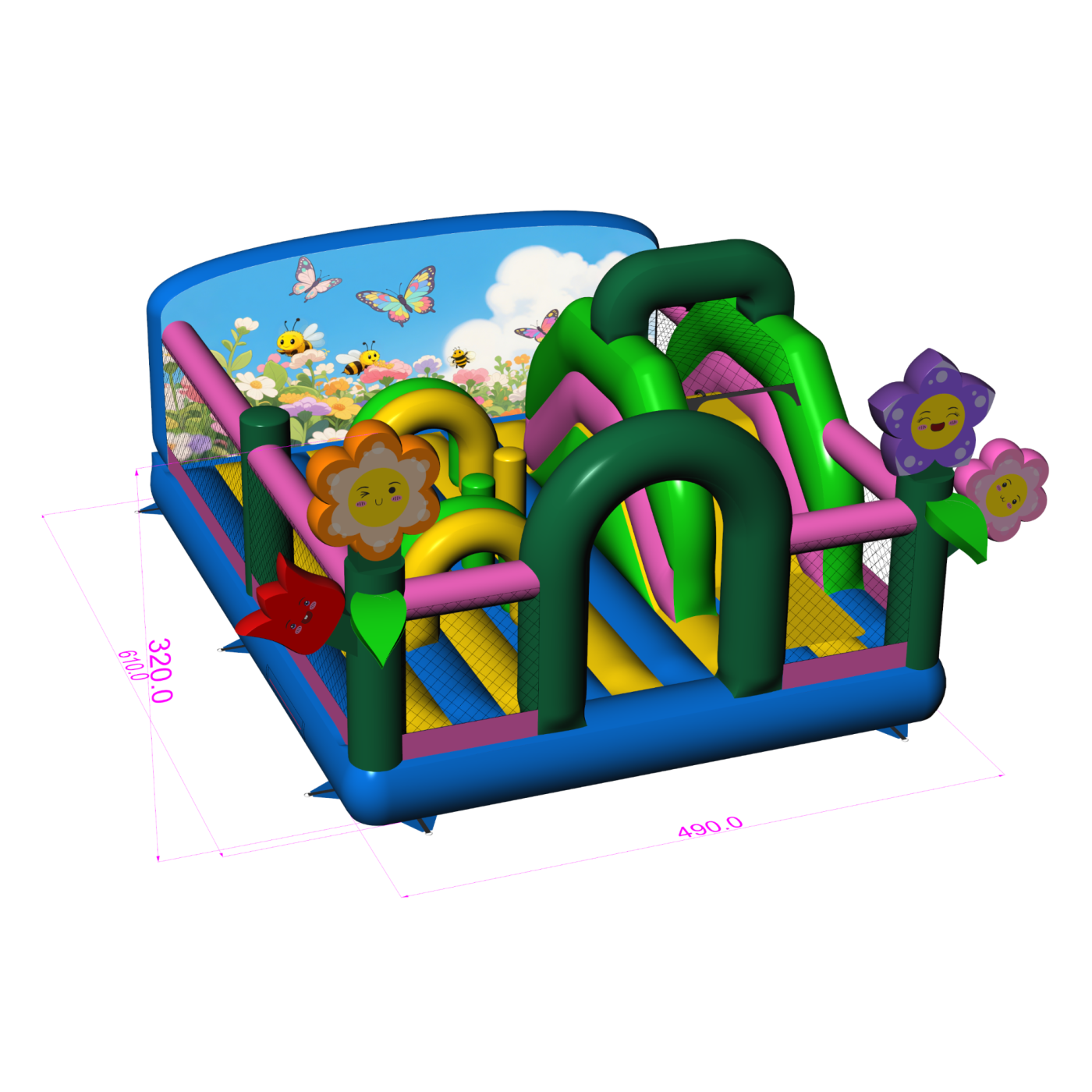 A tavaszi témájú 6x5-ös felfújható játszótér különösen bájos választás a bérbeadó cégek számára, amelyek családi piknikekre, fesztiválokra és szabadtéri rendezvényekre keresnek attrakciókat. A virágok, pillangók és mosolygó figurák színes motívumai pozitív hangulatot teremtenek és vonzzák a kicsiket. A játszótér akadályokat, alagutat és csúszdát tartalmaz, így a gyermekek változatos játékot élvezhetnek egy biztonságos felületen. A kialakítás lehetővé teszi a játékosok gyors cseréjét, így nagy létszámú fordulók számára is tökéletes. Gazdagítsa kínálatát egy olyan témával, amely már első pillantásra mosolyt csal az arcokra.