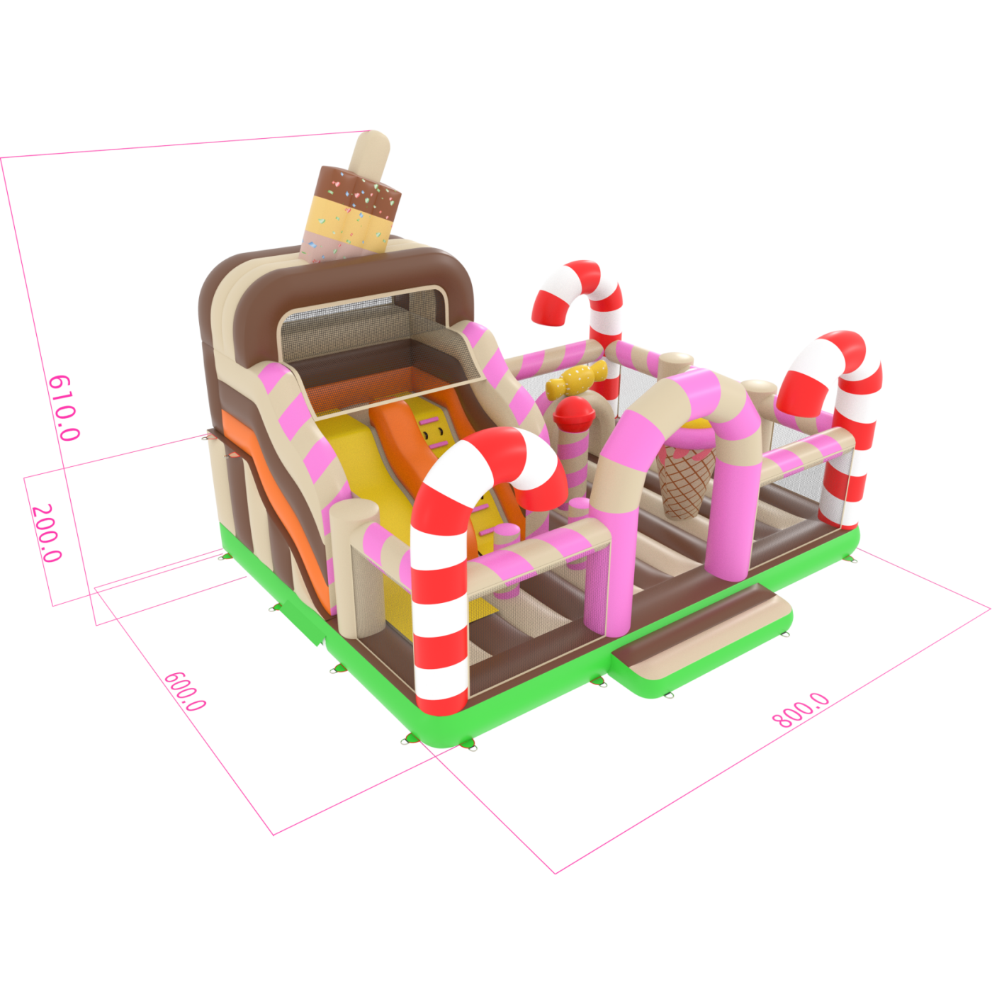 Felfújható játszótér 8x6 cukorkás témában