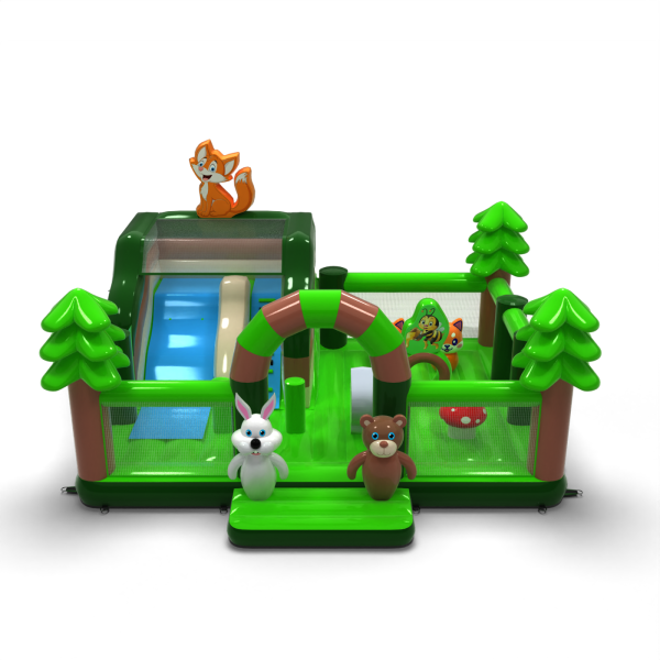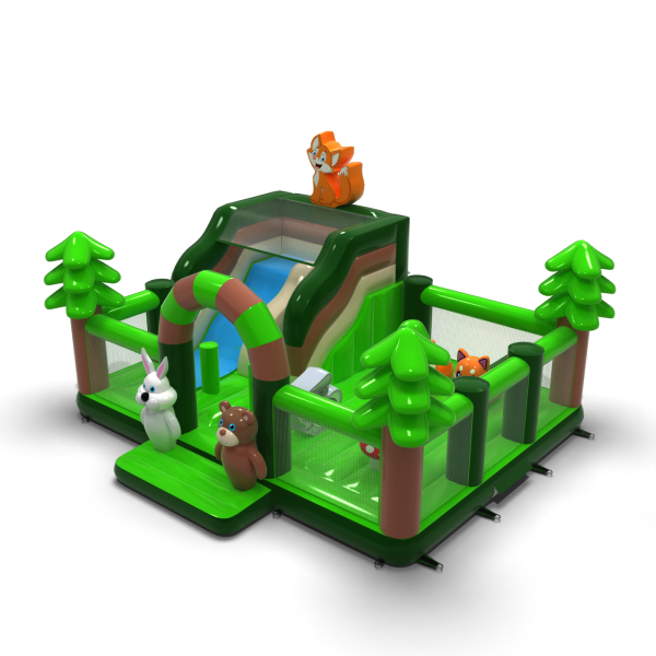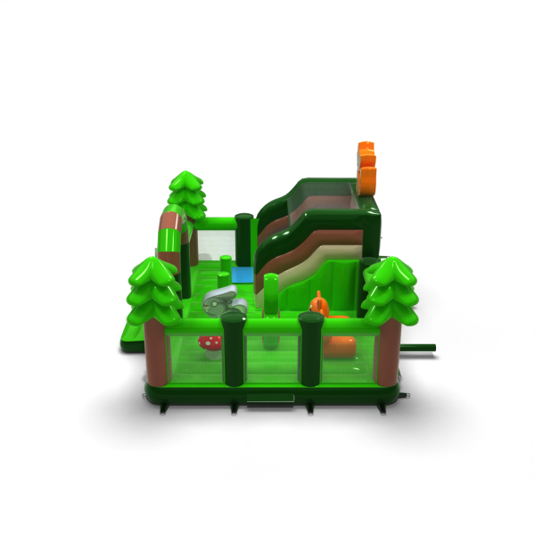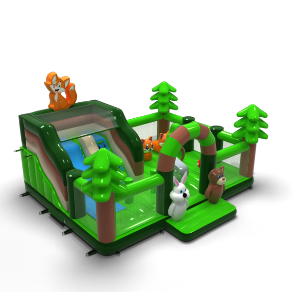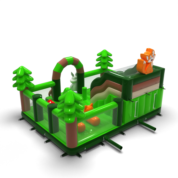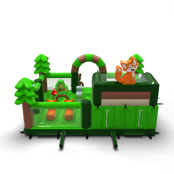 A Felfújható játszótér 8x6 erdei témában elsősorban azoknak a gyerekeknek készült, akik kalandra vágynak barátaikkal és kortársaikkal való játék közben. A felfújható játszótér körülkerített és puha felületű, így használata teljesen biztonságos. Rendszerint egy nagyobb és egy kisebb csúszda található benne, ezért különböző korú gyerekek is élvezettel játszhatnak rajta. A Felfújható játszótér 8x6 erdei témában kiválóan alkalmas családi piknikekre, csapatépítő vagy céges rendezvényekre és más típusú eseményekre – legyenek azok szabadtériek vagy beltériek. A felfújható játszóterek remek alternatívát jelentenek a nagyobb és igényesebb felfújható attrakciókkal szemben. Különösen ajánljuk ezt az attrakciót kezdő vállalkozások számára.