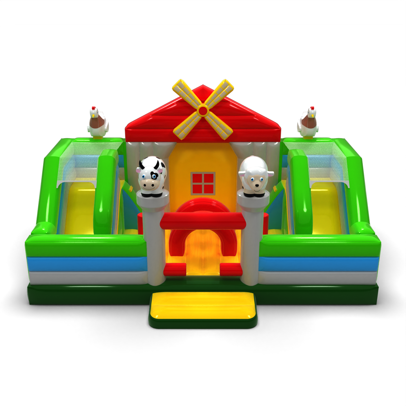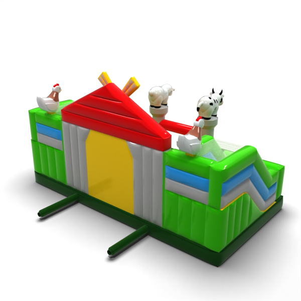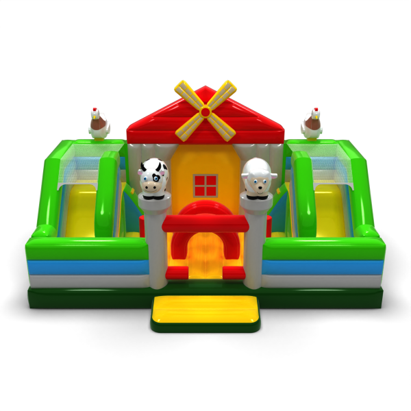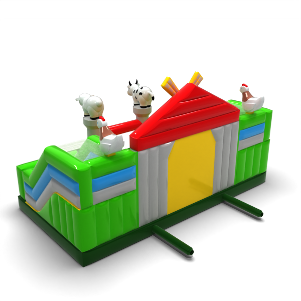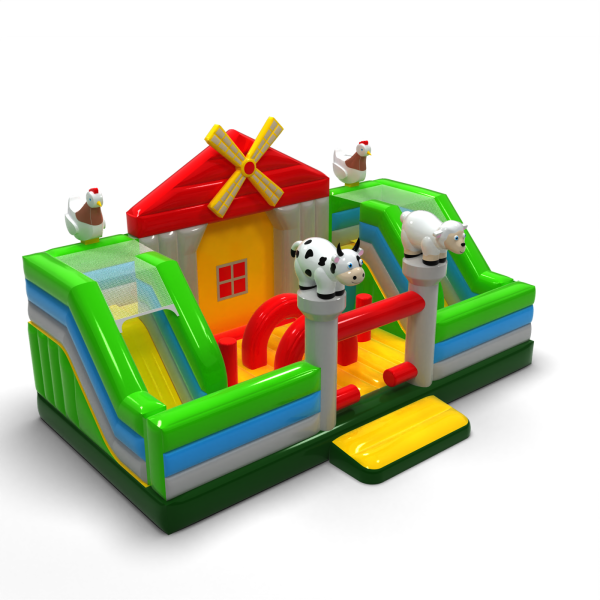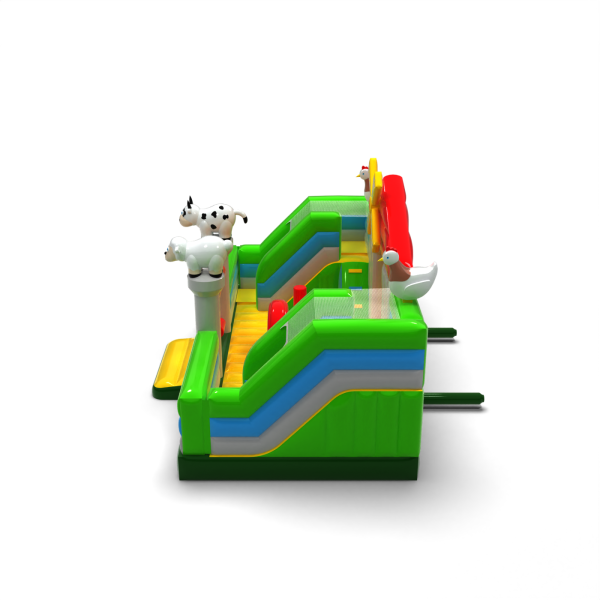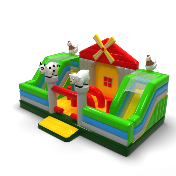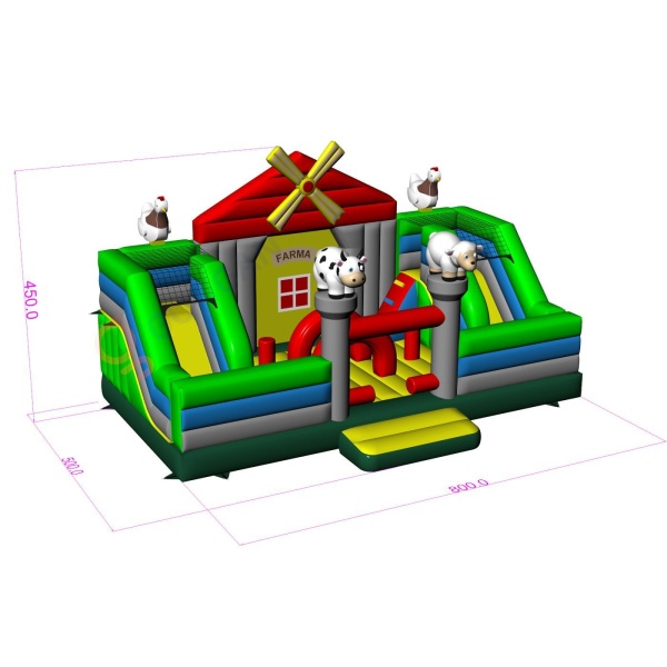 A "Farm" felfújható játszótér egy bájos, állatokkal és kalandokkal teli vidéki világba repíti a gyerekeket. A színes tanyai elemek aktív játékra és képzeletre ösztönöznek. Ideális attrakció szabadtéri rendezvényekre, amely sok szórakozást nyújt a gyerekeknek.