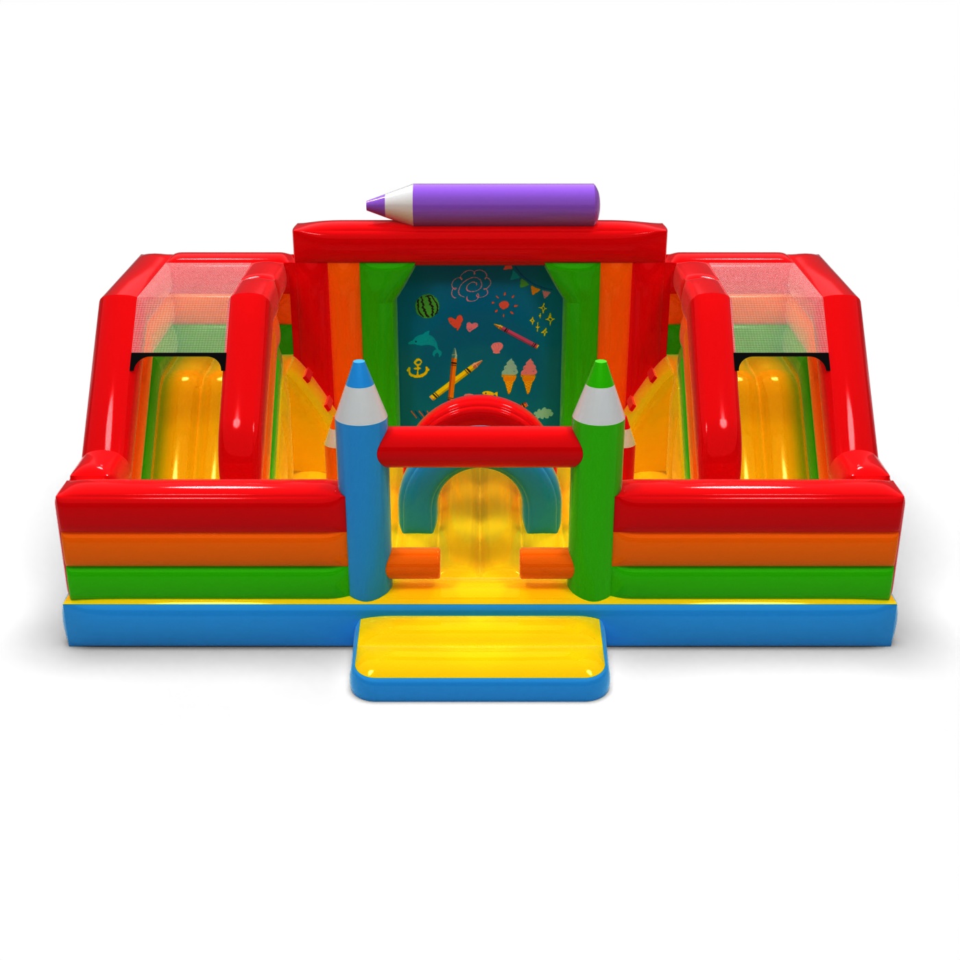 A Felfújható játszótér - zsírkréták elsősorban azoknak a gyerekeknek készült, akik kalandra vágynak barátaikkal és kortársaikkal való játék közben. A felfújható játszótér körülkerített és puha felületű, így használata teljesen biztonságos. Rendszerint egy nagyobb és egy kisebb csúszda található benne, ezért különböző korú gyerekek is élvezettel játszhatnak rajta. A Felfújható játszótér - zsírkréták kiválóan alkalmas családi piknikekre, csapatépítő vagy céges rendezvényekre és más típusú eseményekre – legyenek azok szabadtériek vagy beltériek. A felfújható játszóterek remek alternatívát jelentenek a nagyobb és igényesebb felfújható attrakciókkal szemben. Különösen ajánljuk ezt az attrakciót kezdő vállalkozások számára.