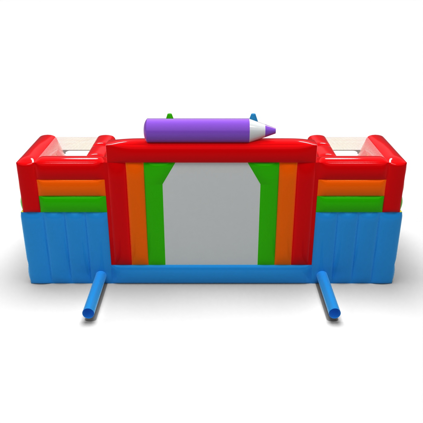 A nagyméretű, krétatábla stílusú kialakítás egy világosan elhatárolt, kreatív játékzónát hoz létre. A különböző aktivitási elemek arra ösztönzik a gyerekeket, hogy hosszabb ideig élvezzék a látványosságokat, és szabadon mozogjanak odabent. A pasztellszínek és a jellegzetes formák pozitív asszociációkat keltenek a rajzolással és a kreatív játékkal kapcsolatban. Azoknak a szervezőknek ajánljuk, akik nagy, többfunkciós animációs teret szeretnének kínálni a gyerekeknek. Az attrakció tökéletes lesz nagy piknikek, fesztiválok és családi szabadtéri rendezvények számára.