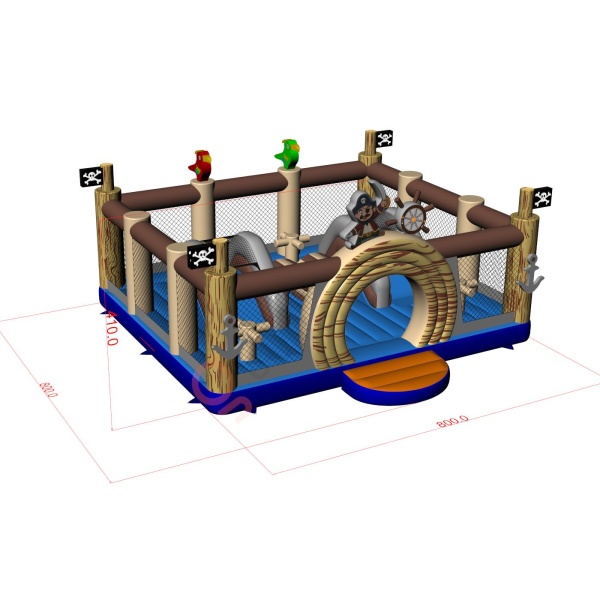 A Kalózos játszótér elsősorban azoknak a gyerekeknek készült, akik kalandra vágynak barátaikkal és kortársaikkal való játék közben. A felfújható játszótér körülkerített és puha felületű, így használata teljesen biztonságos. Rendszerint egy nagyobb és egy kisebb csúszda található benne, ezért különböző korú gyerekek is élvezettel játszhatnak rajta. A Kalózos játszótér kiválóan alkalmas családi piknikekre, csapatépítő vagy céges rendezvényekre és más típusú eseményekre – legyenek azok szabadtériek vagy beltériek. A felfújható játszóterek remek alternatívát jelentenek a nagyobb és igényesebb felfújható attrakciókkal szemben. Különösen ajánljuk ezt az attrakciót kezdő vállalkozások számára.
