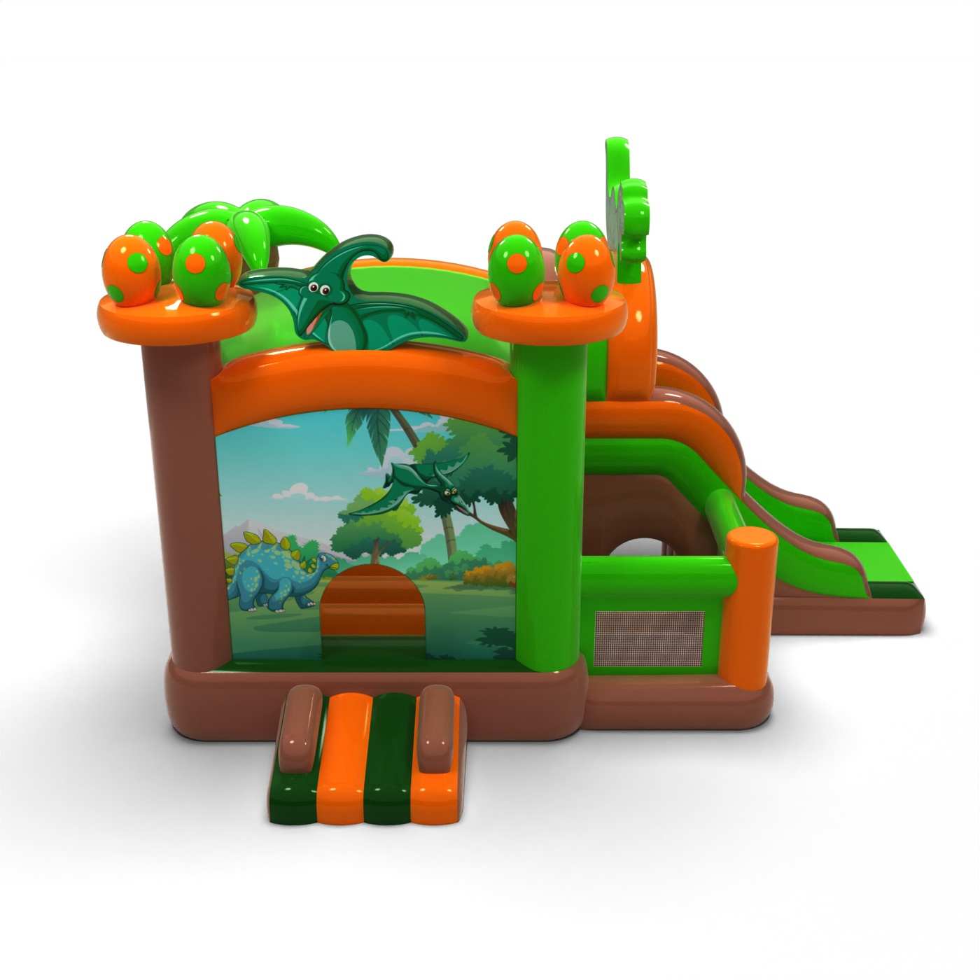 A Combo ugrálóvár dinoszaurusz témával minden ugráláskedvelő számára fantasztikus élményt nyújt. A gyerekek imádnak rajta játszani – ugrálnak és beleélik magukat az attrakció témájához illő szerepekbe. A Combo ugrálóvár dinoszaurusz témával nemcsak a legkisebbeknek szól. Az ebbe a kategóriába tartozó felfújható attrakciók általában gazdagon díszítettek, és számos olyan elemet tartalmaznak, amelyek játékra csábítanak a szabadban. A felfújható ugrálóvárak varázslatos világot teremtenek, ahol a gyerekek vidáman ugrálhatnak barátaikkal és társaikkal. A légvár más termékeinkkel is kombinálható, így egy lenyűgöző, mesebeli élményvilágot hozhatsz létre, amely hosszú órákon át leköti a gyerekeket.
