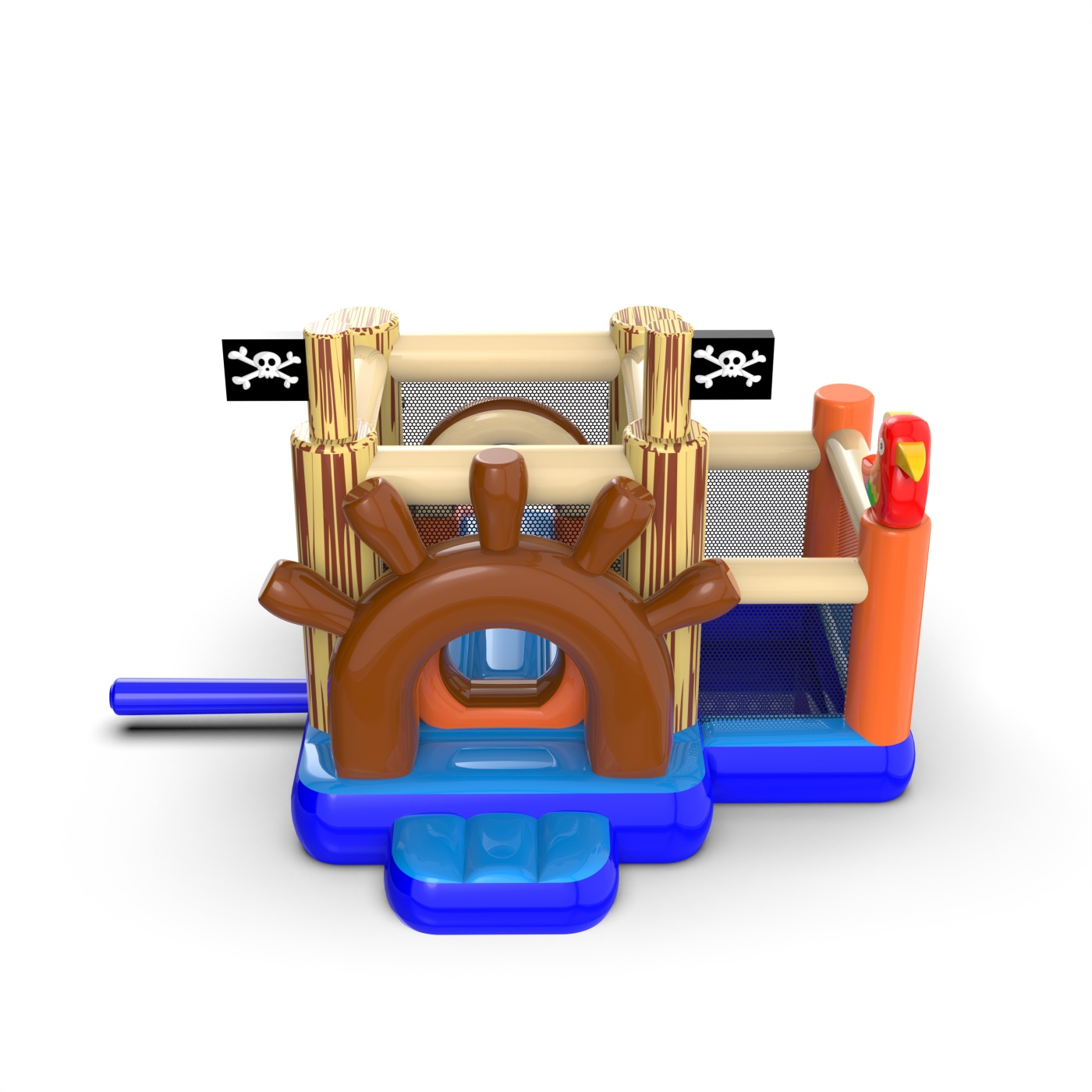 Mint minden felfújható attrakciónk, ez a termék is kiváló minőségű anyagokból készült – jelen esetben nagy szakítószilárdságú, új generációs PVC-ből. A Egy kis kalóz ugrálóvár száraz medencével a gyermekek számára mérete 3,6 m x 2,7 m x 2,25 m (hosszúság, szélesség és magasság). Teljesíti a EN 14960 biztonsági szabvány követelményeit, amelyet a felfújható szórakoztató eszközökre alkalmaznak. A légvárhoz ajánlott ventilátorokat a csomag tartalmazza. A legtöbb attrakciónkhoz hasonlóan ez is két év garanciával rendelkezik. A Gangaru gondoskodik róla, hogy Önnek minél kevesebb dolga legyen – a csomag része az összes szükséges rögzítőelem is (kötelek, cövekek). A terméket független szakértő vizsgálta be a biztonság szempontjából.