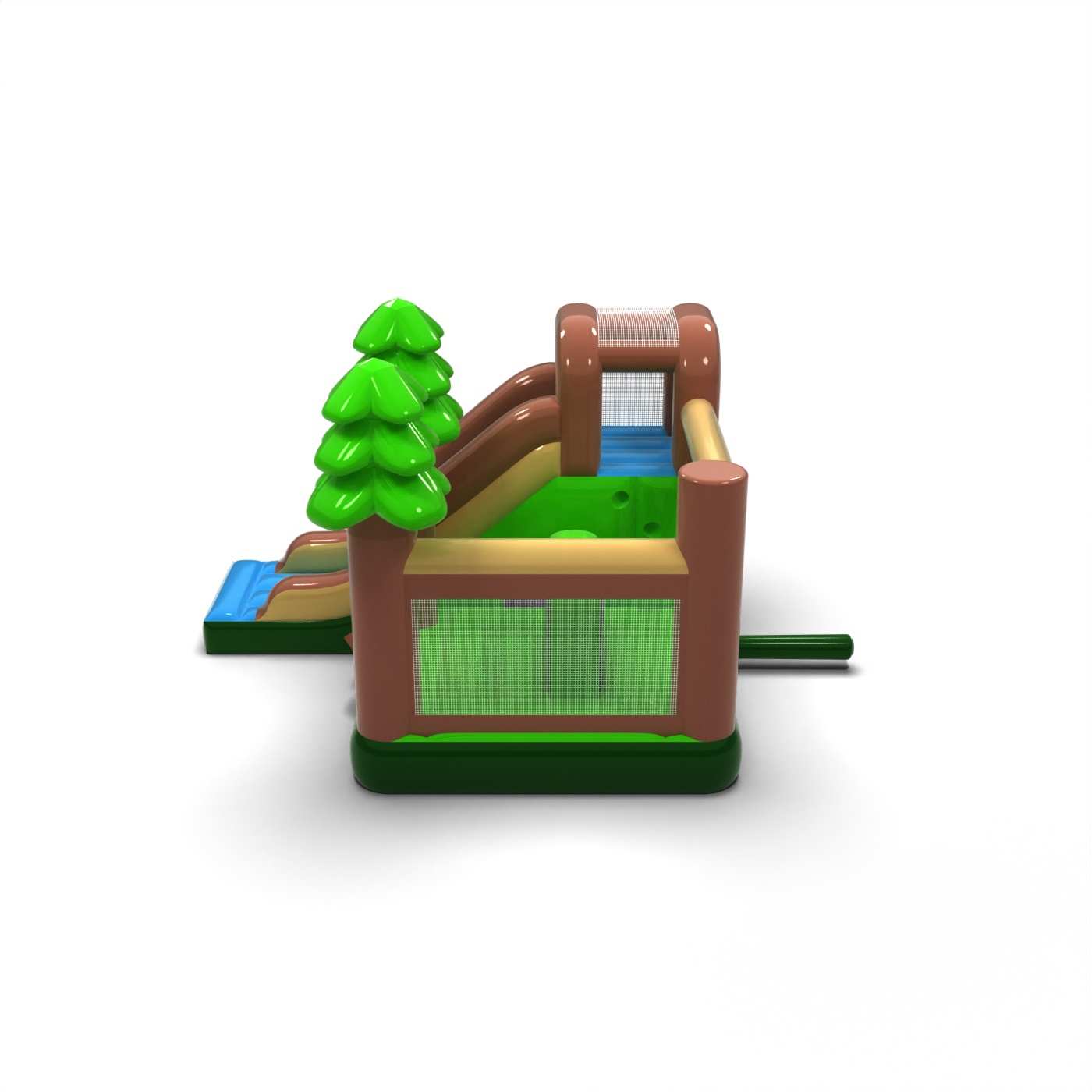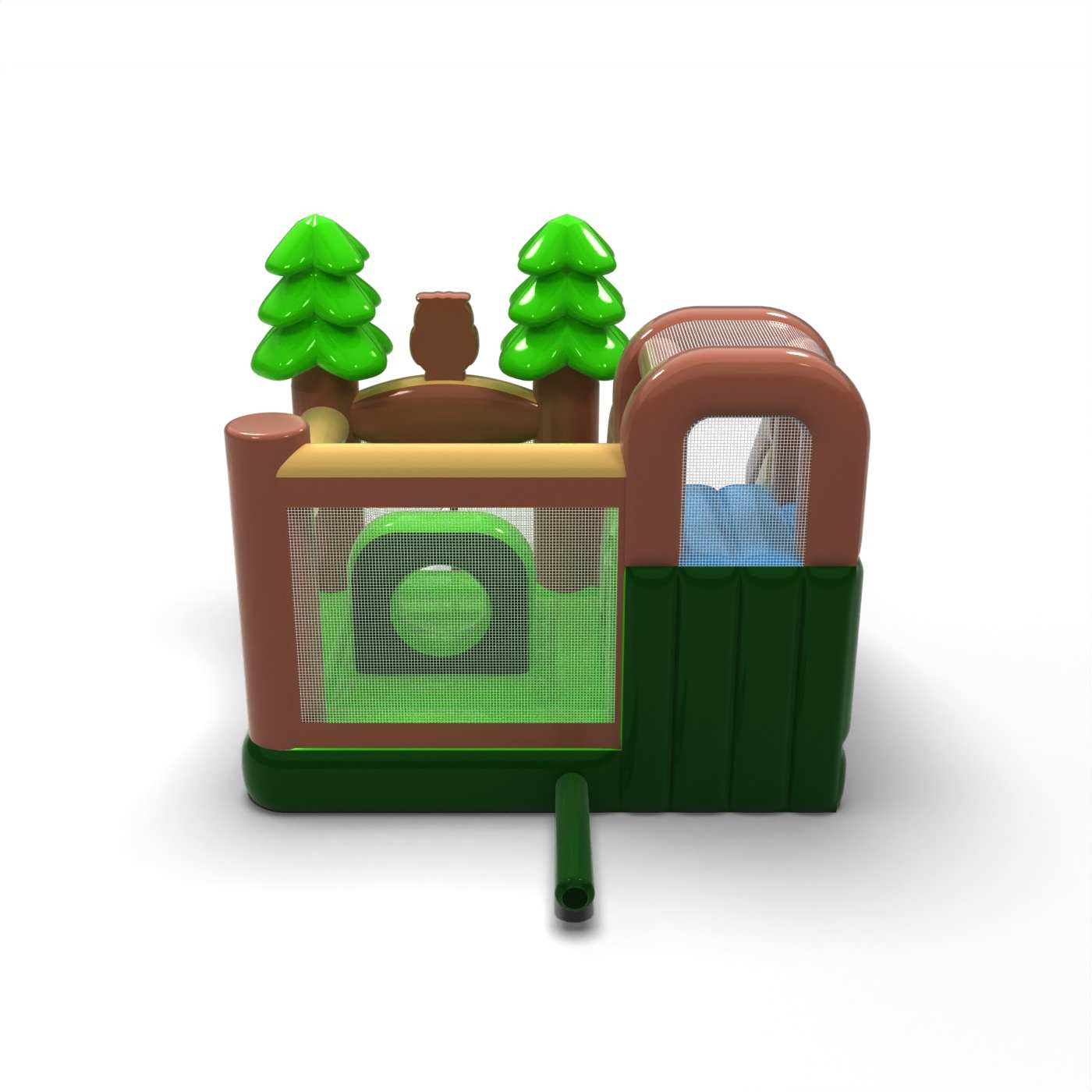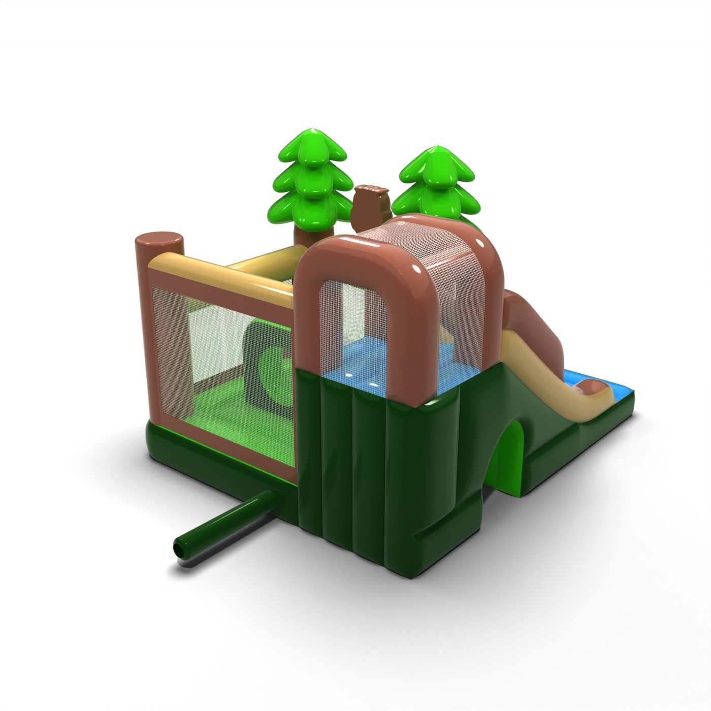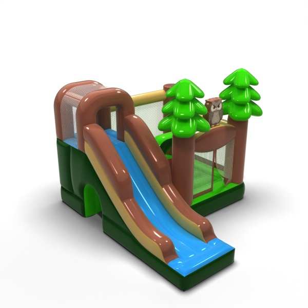 A természetes, erdei hangulat meleg és harmonikus jelleget kölcsönöz ennek a látványosságnak, amely jól illeszkedik a családi rendezvényekhez. Az ugrálóvár és a csúszda kombinációja változatos szórakozást és zökkenőmentes mozgást biztosít a gyermekek számára a résztvevők számára. Az erdő ihlette motívumok barátságos vizuális narratívát építenek fel, és nyugodt tempójú aktivitásra ösztönöznek. Praktikus választás a piknikeket és fesztiválokat kiszolgáló, természetes, szabadtéri hangulatú bérleményekhez. A felfújható jól működik olyan rendezvényeken, ahol fontos a szelíd esztétika és a biztonságos gyermekjáték.