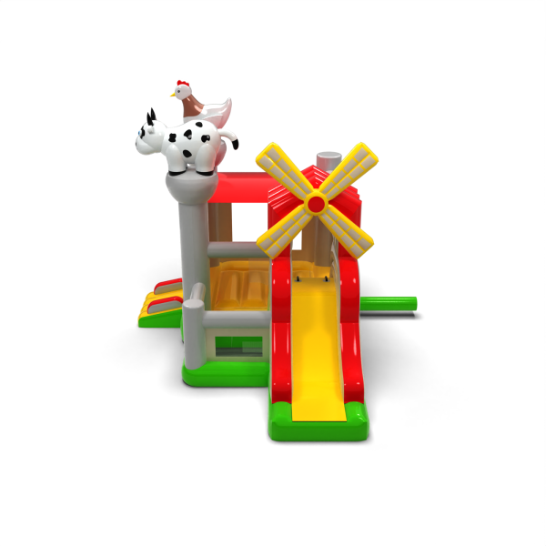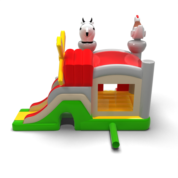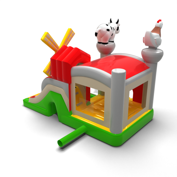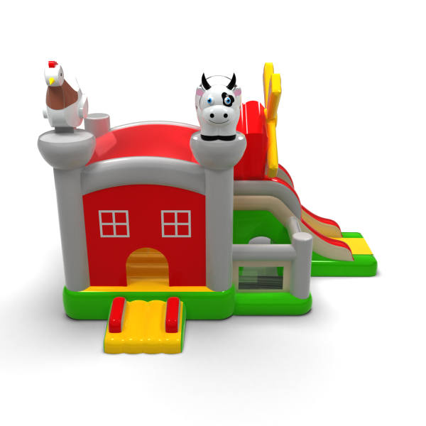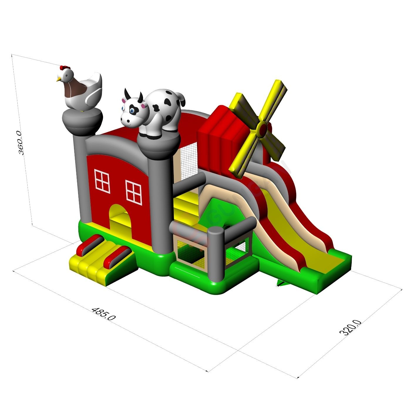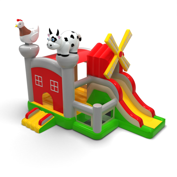 A farmer kombinált felfújható vár egy varázslatos játszótér, amely a vidéki táj varázslatos világába repíti a gyerekeket. Az imádnivaló állatokat ábrázoló dekorációkkal ez a felfújható vár a kaland és a szórakozás hangulatát teremti meg, aktív játékra ösztönözve a kisgyermekeket. Ideális attrakció mindenféle szabadtéri rendezvényhez, amely biztonságot és felejthetetlen pillanatokat biztosít a barátokkal való szórakozáshoz!