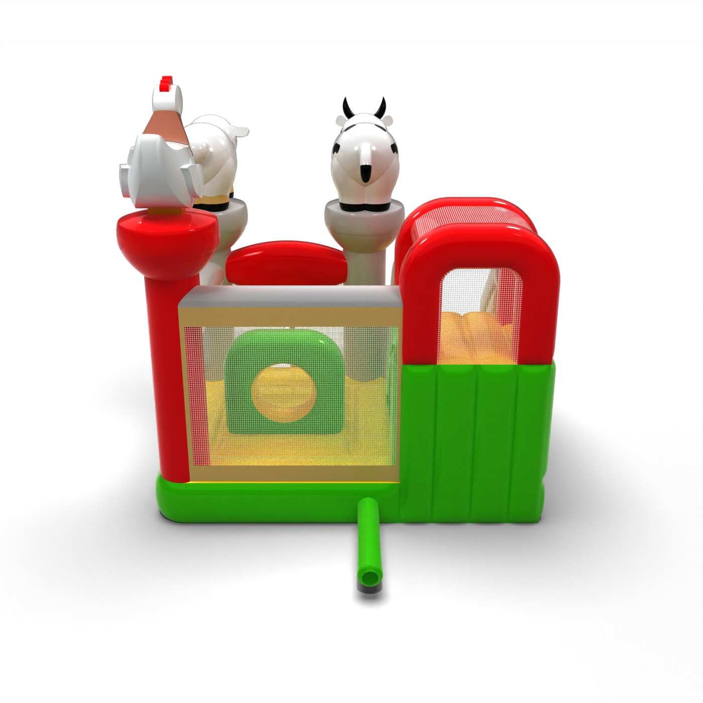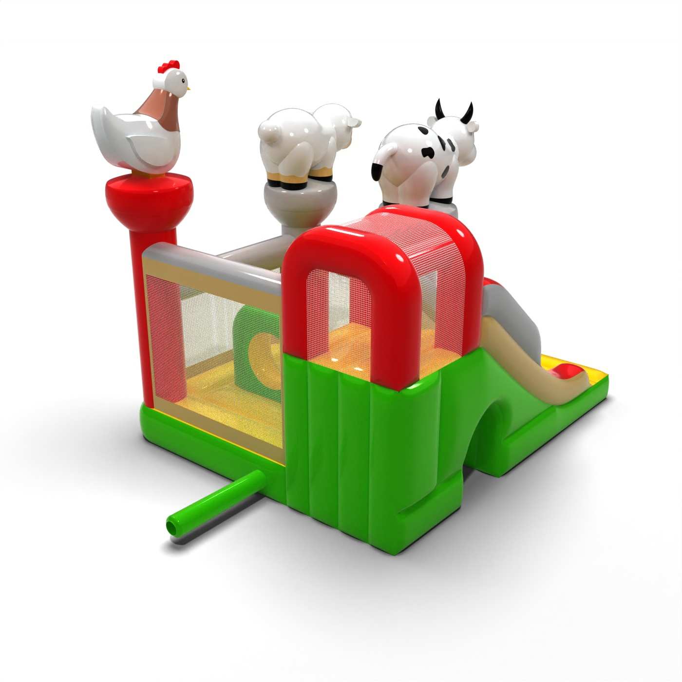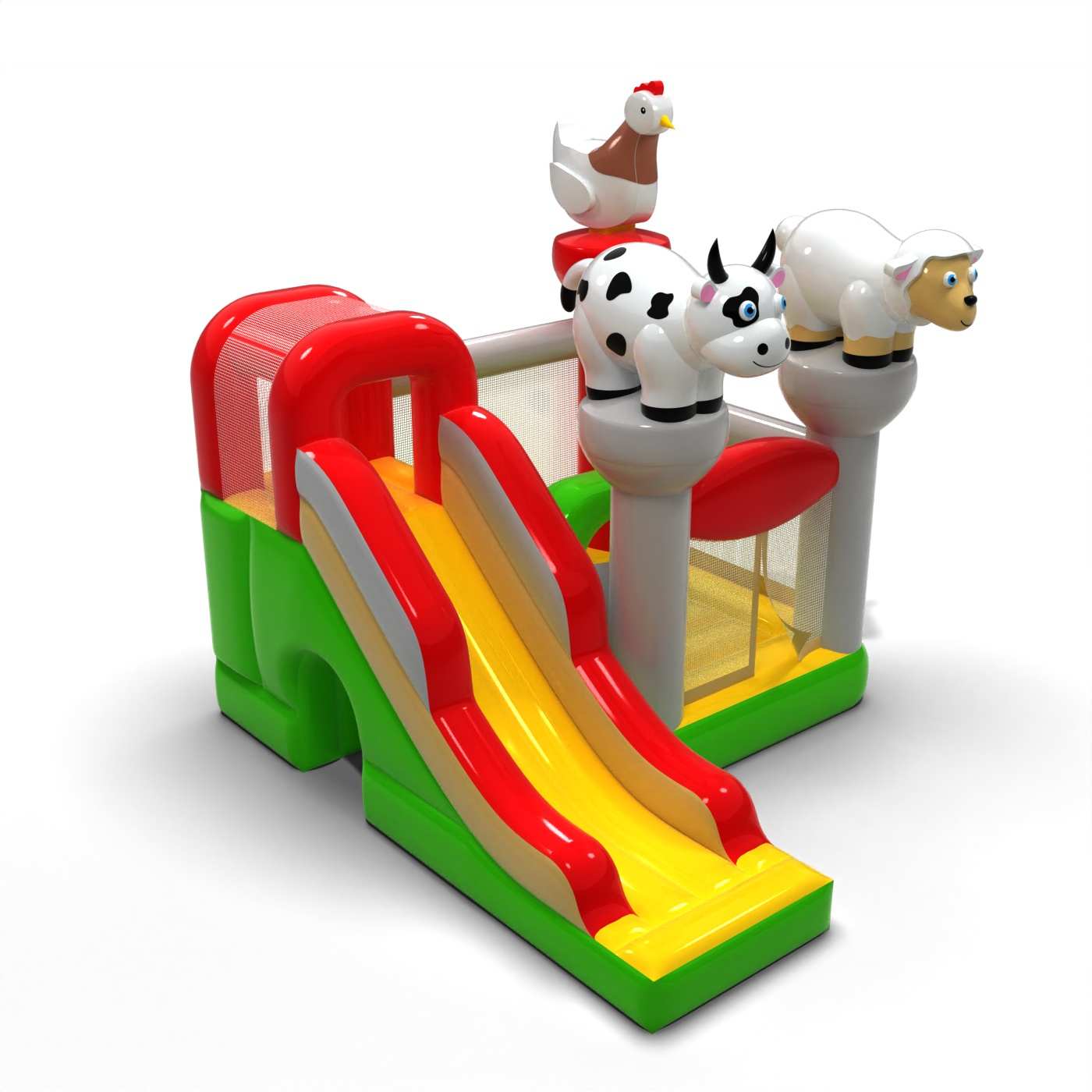 A paraszti légkör és a barátságos kialakítás nyugodt, családi hangulatot kölcsönöz ennek a látványosságnak. Az ugrálóvár és a csúszda kombinációja változatos tevékenységeket és természetes forgást biztosít a gyerekeknek játék közben. A vidéki ihletésű esztétika meleg hangulatot teremt, és jól működik szabadtéri rendezvényekhez. Praktikus választás a fesztiválokat és piknikeket kiszolgáló, családcentrikus bérbeadók számára. A felfújható légvár jól működik olyan rendezvényeken, ahol fontos a szelíd légkör és a biztonságos szórakozás a gyermekek számára.