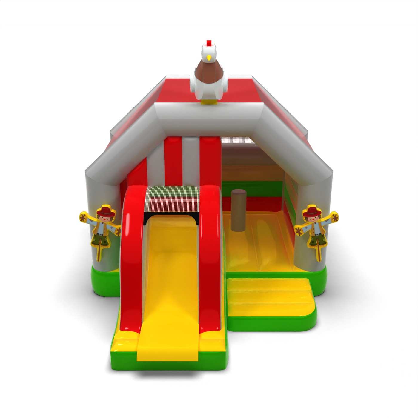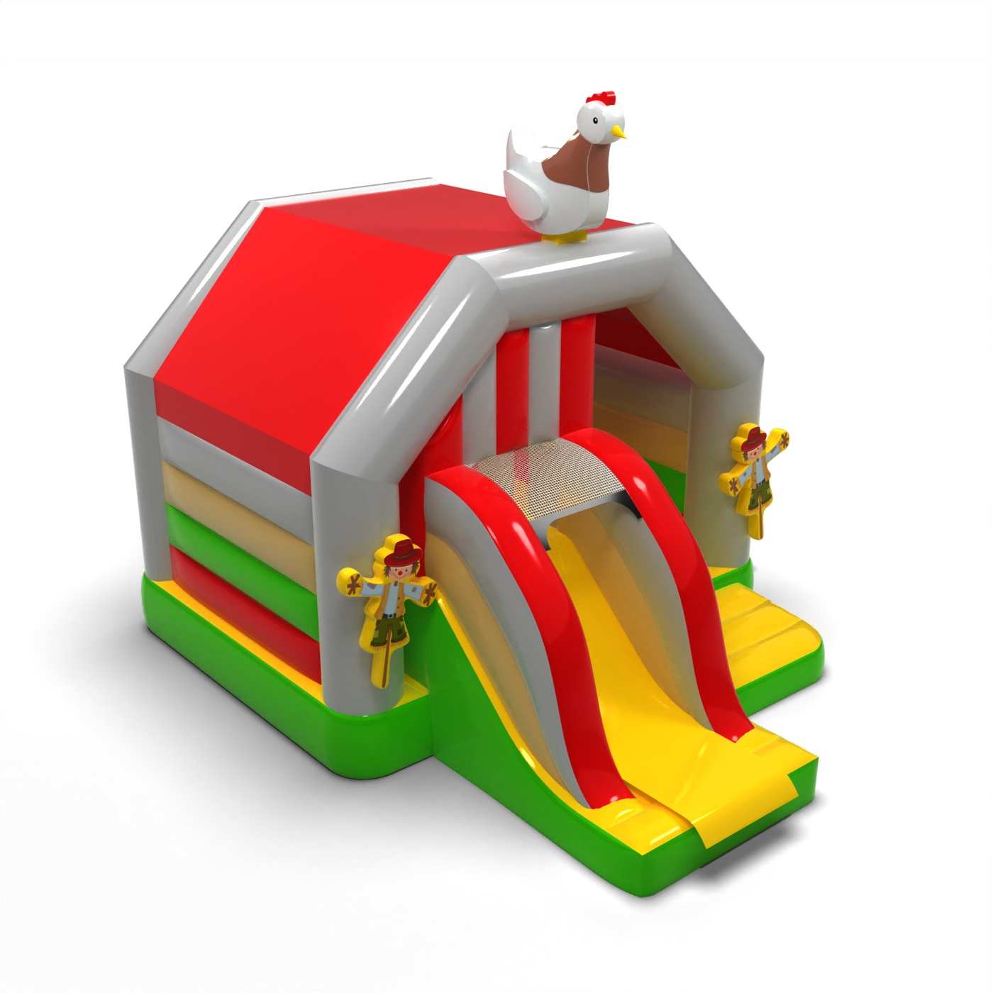 A Farmház - felfújható csúszdával minden ugráláskedvelő számára fantasztikus élményt nyújt. A gyerekek imádnak rajta játszani – ugrálnak és beleélik magukat az attrakció témájához illő szerepekbe. A Farmház - felfújható csúszdával nemcsak a legkisebbeknek szól. Az ebbe a kategóriába tartozó felfújható attrakciók általában gazdagon díszítettek, és számos olyan elemet tartalmaznak, amelyek játékra csábítanak a szabadban. A felfújható ugrálóvárak varázslatos világot teremtenek, ahol a gyerekek vidáman ugrálhatnak barátaikkal és társaikkal. A légvár más termékeinkkel is kombinálható, így egy lenyűgöző, mesebeli élményvilágot hozhatsz létre, amely hosszú órákon át leköti a gyerekeket.
