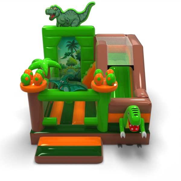 Az ugrálóterület és a csúszda kombinációja a jura hangulatban vonzó és változatos játékteret teremt a gyermekek számára. A dinoszauruszos kialakítás kalandos hangulatot teremt, és már az első pillantástól kezdve aktivitásra ösztönöz. Az attrakciók változatos formája lehetővé teszi a gyermekek számára a szabad játékot, anélkül, hogy gyorsan megunnák egy-egy funkciót. Ez praktikus megoldás azon bérbeadó cégek számára, amelyek egy felfújható, többféleképpen használható játékot szeretnének kínálni. Az attrakció jól működik fesztiválokon, családi piknikeken és szabadtéri rendezvényeken, ahol fontos a sokoldalúság és a gyermekek folyamatos érdeklődése.