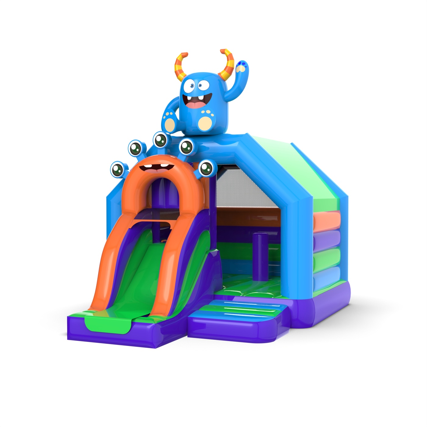 A felfújható szörnykunyhó csúszdával egy izgalmas attrakció, amely a gyerekeket egy fantasztikus, szörnyekkel és kalandokkal teli világba repíti. A kék szörnyeteg játékra hív, ez a kunyhó ugrálásra és felfedezésre ösztönzi a kicsiket, a csúszda pedig izgalmasabbá teszi a játékot. Ez a felfújható kunyhó ideális fesztiválokra, születésnapokra és más szabadtéri rendezvényekre, és garantálja a biztonságos környezetben eltöltött órák szórakozását.