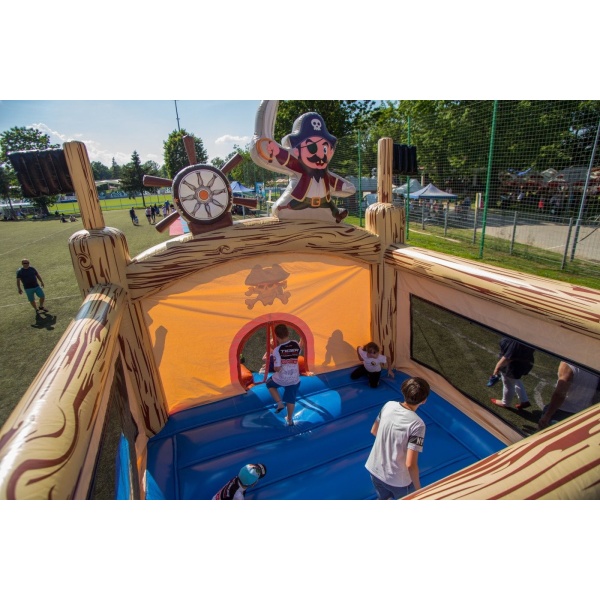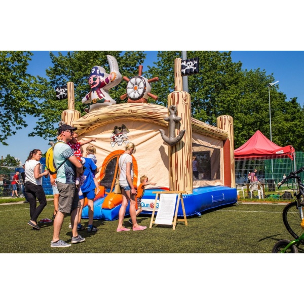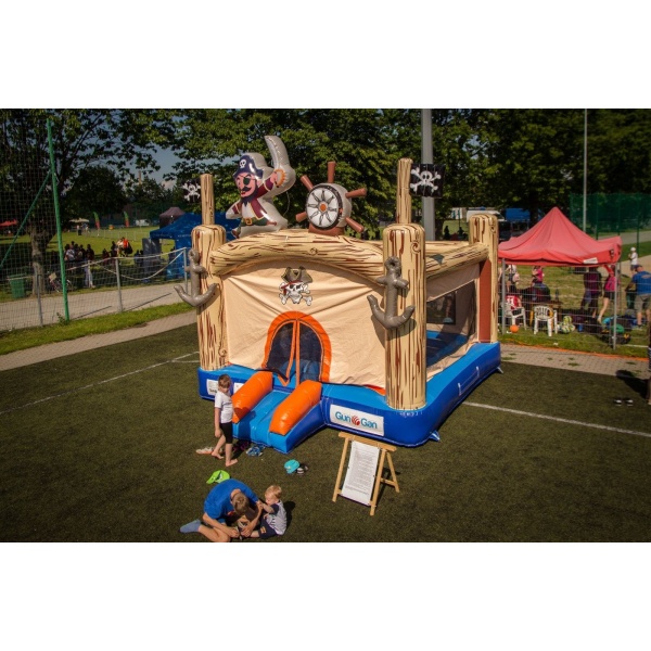 A kalóz ugrálóvár tökéletes attrakció a fiatal kalandorok számára. A kalóztémának köszönhetően a gyerekek a merész kalózok szerepébe bújhatnak, kincseket fedezhetnek fel és szórakozhatnak a szabadban. A robusztus szerkezetnek és a színes dekorációnak köszönhetően a vár tökéletes fesztiválokra, piknikekre és családi rendezvényekre.