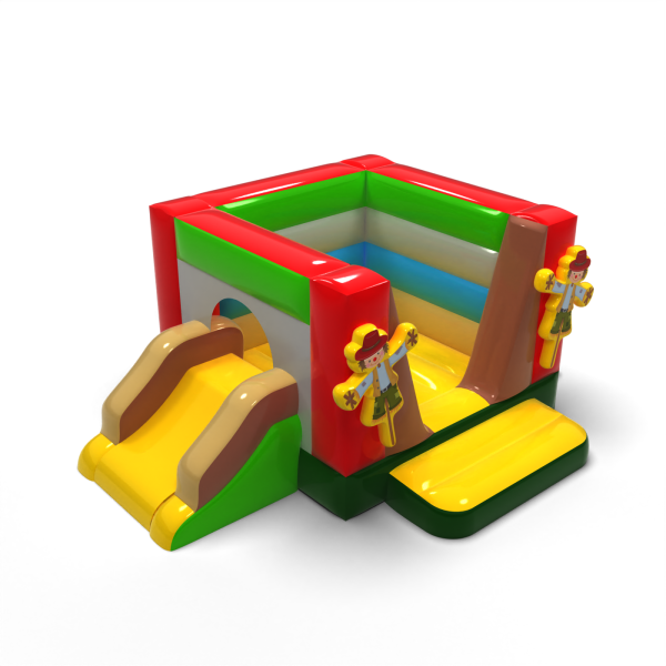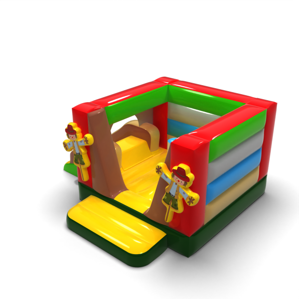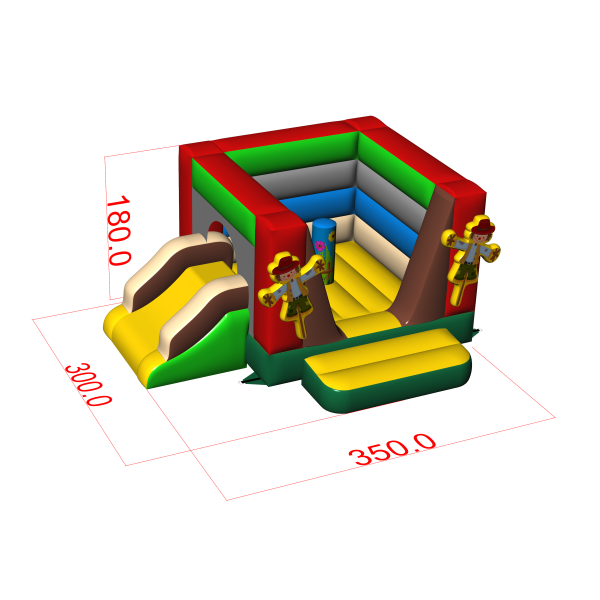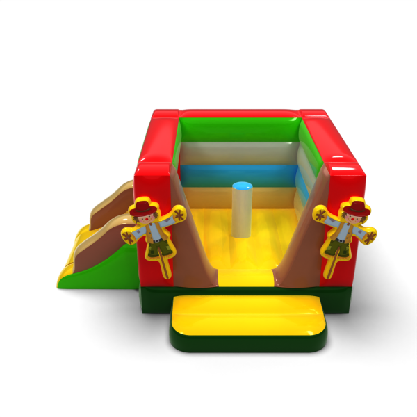 A Kis ugrálóvár csúszdával - farmer témában minden ugráláskedvelő számára fantasztikus élményt nyújt. A gyerekek imádnak rajta játszani – ugrálnak és beleélik magukat az attrakció témájához illő szerepekbe. A Kis ugrálóvár csúszdával - farmer témában nemcsak a legkisebbeknek szól. Az ebbe a kategóriába tartozó felfújható attrakciók általában gazdagon díszítettek, és számos olyan elemet tartalmaznak, amelyek játékra csábítanak a szabadban. A felfújható ugrálóvárak varázslatos világot teremtenek, ahol a gyerekek vidáman ugrálhatnak barátaikkal és társaikkal. A légvár más termékeinkkel is kombinálható, így egy lenyűgöző, mesebeli élményvilágot hozhatsz létre, amely hosszú órákon át leköti a gyerekeket.