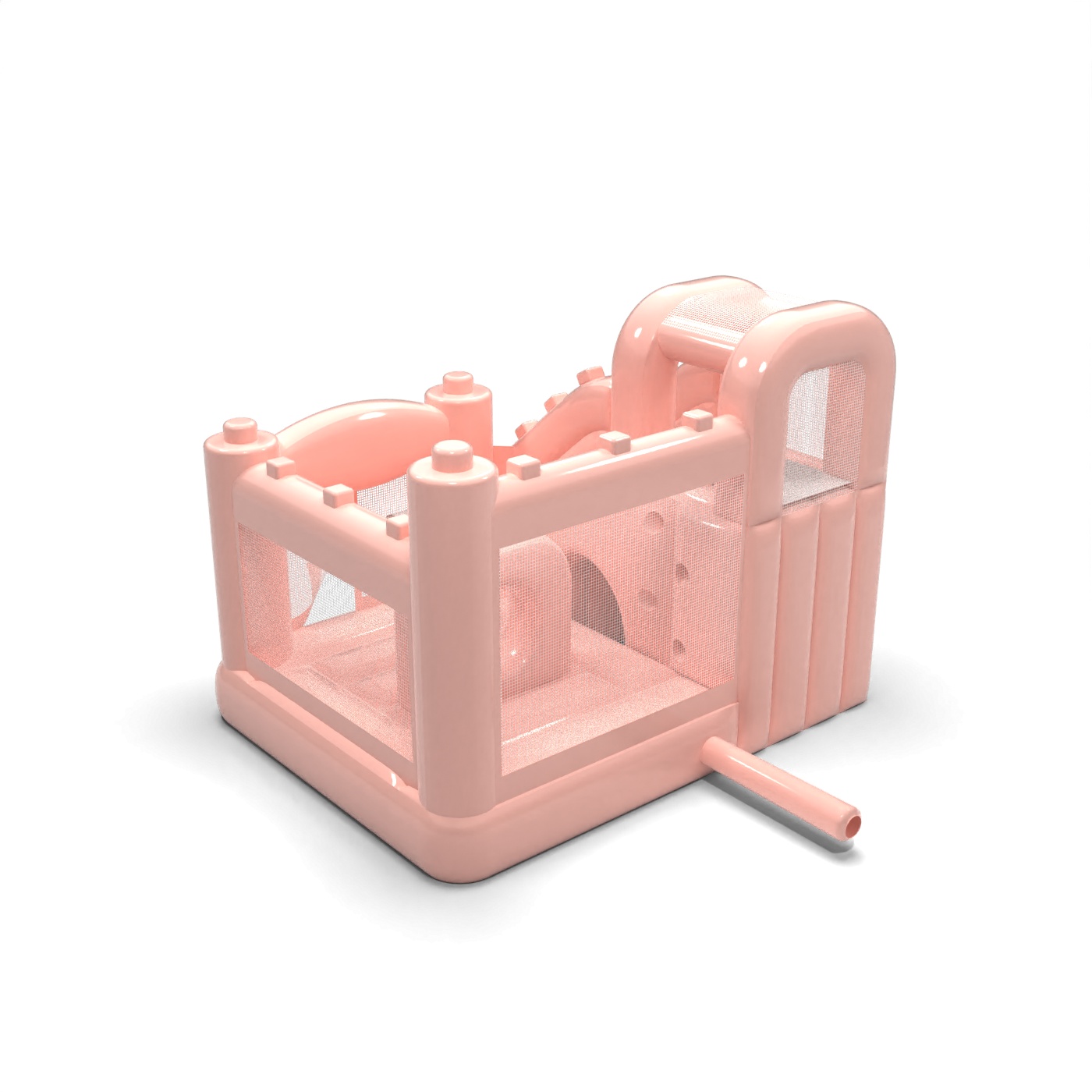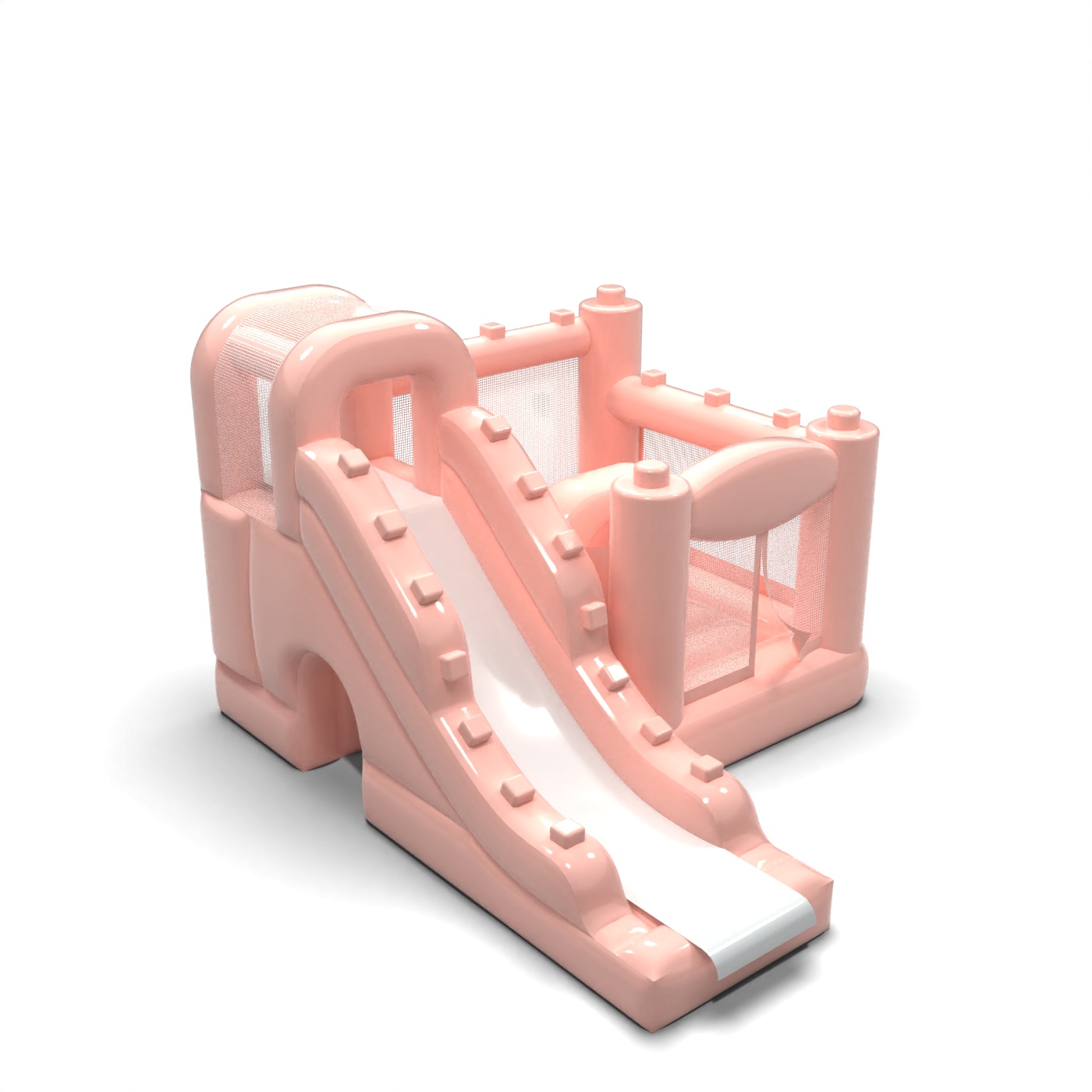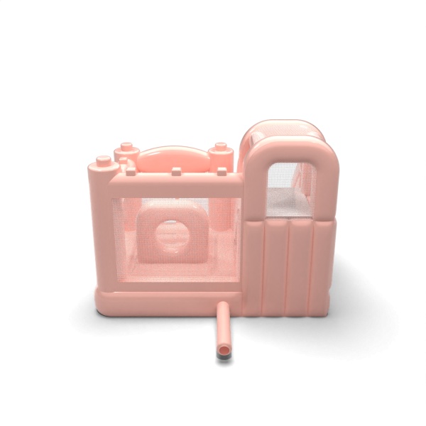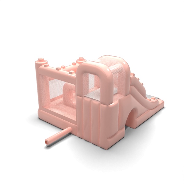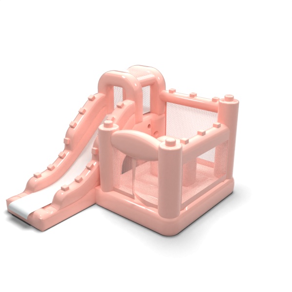 Kis ugrálóvár csúszdával gyerekeknek - pasztell rózsaszínű