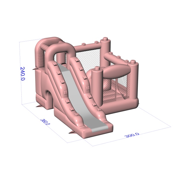 A kompakt kialakítás, amely egy egységben egyesíti az ugrálóterületet és a csúszdát, funkcionális játékteret teremt a kisebb fejlesztésekhez. A pasztellrózsaszín szín könnyed, esztétikus jelleget kölcsönöz az attrakciónak, amely jól illeszkedik a lufidíszítésekhez és a családi partikhoz. A zárt hálós oldalak lehetővé teszik a móka könnyű irányítását, és növelik a szervezők kényelmét. Ez a modell különösen praktikus a kerti születésnapok, áldozócsütörtöki partik és meghitt magánrendezvények vendéglátására szolgáló bérleményekhez. Az attrakció ott működik a legjobban, ahol fontos az esztétikum, a biztonság és a gyors telepítés korlátozott helyen.