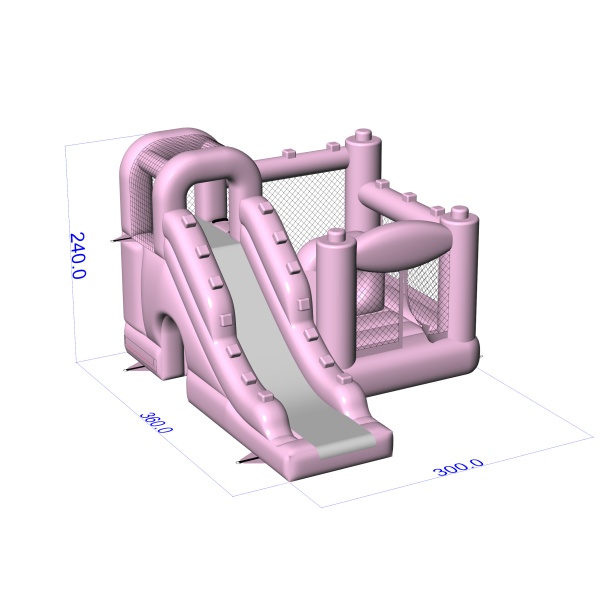 A finom, púderrózsaszín test nyugodt, harmonikus hangulatot kölcsönöz a gyermekrészlegnek, ami elősegíti a rendezvény családi légkörét. Az ugrálótérrel és oldalirányú csúszdával ellátott belső tér lehetővé teszi, hogy a gyerekek természetes módon mozoghassanak a tevékenységek között anélkül, hogy torlódást okoznának. A szerkezetet úgy tervezték, hogy a játék kényelmének fenntartása mellett maximalizálja a kis terület kihasználtságát. Ez a megoldás jól működik az óvodákat, szállodai animációkat és bensőséges szabadtéri rendezvényeket kiszolgáló kölcsönző cégek számára. A modell leginkább olyan projektekhez illik, ahol fontos a finom esztétika és a gyermekbarát attrakció.