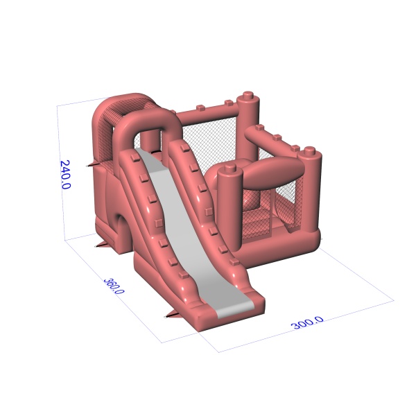 A piszkos rózsaszín árnyalatú, visszafogott színösszeállítás modernebb és elegánsabb megjelenést kölcsönöz ennek a látványosságnak, mint a klasszikus, intenzív felfújható játékok. Az ugrálás és az egypályás csúszda kombinációja változatos tevékenységet biztosít a gyerekeknek anélkül, hogy nagy területre lenne szükségük. A kompakt test és az áttekinthető bejárati elrendezés megkönnyíti a játszótér megszervezését magán- és céges rendezvények során. Olyan bérbeadó cégek számára jelent ajánlatot, amelyek prémium rendezvényekre szabott esztétikával szeretnék megkülönböztetni kínálatukat. A modell családi partik, különleges rendezvények és elegáns szabadtéri piknikek alkalmával is jól használható.