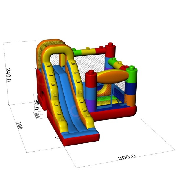 A Színes blokkok témájú, csúszdás kis ugrálóvár nagyszerű attrakció, amely garantálja a biztonságos és örömteli játékot a kicsik számára. Az élénk színek és a gondosan megtervezett részletek vonzzák a gyerekek figyelmét, aktívkodásra és motoros készségeik fejlesztésére ösztönzik őket. Tökéletes választás születésnapokra, fesztiválokra vagy más szabadtéri rendezvényekre, hogy felejthetetlen örömteli és szórakoztató pillanatokat szerezzen!