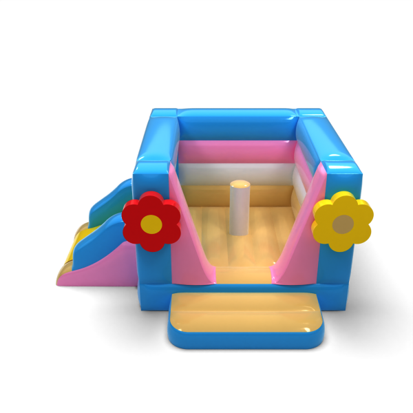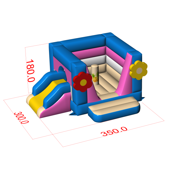 Ez a kis felfújható csúszdás, hawaii témájú csúszda ideális szállodai, éttermi vagy rendezvénytermi eseményekhez. Az alacsony kialakításnak köszönhetően az attrakció beltérben is felállítható, a virágmotívummal díszített színes kialakításnak köszönhetően pedig az ugrálóvár a gyerekek számára is figyelemfelkeltő, és a fényképeken is jól mutat. A beépített mini csúszda növeli az attrakció funkcionalitását anélkül, hogy több helyet igényelne. Mutasson be egy kompakt attrakciót, amely minimális helyigény mellett is szórakoztató.