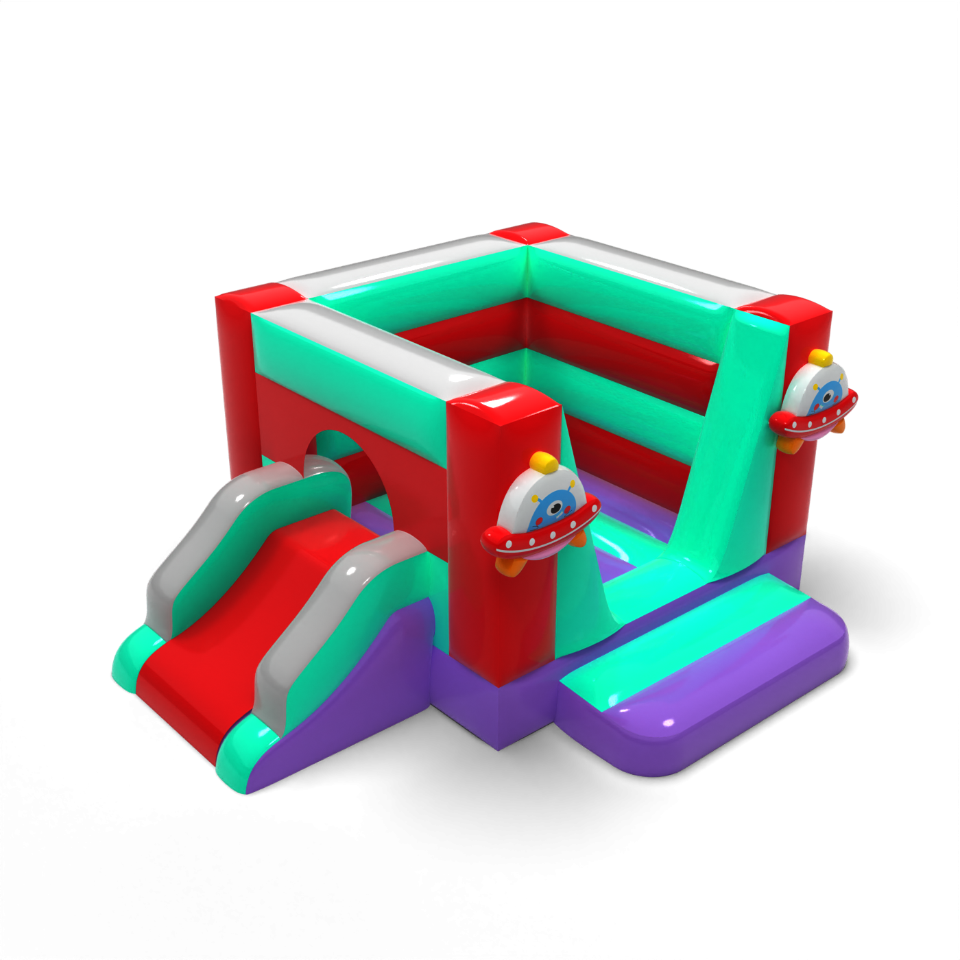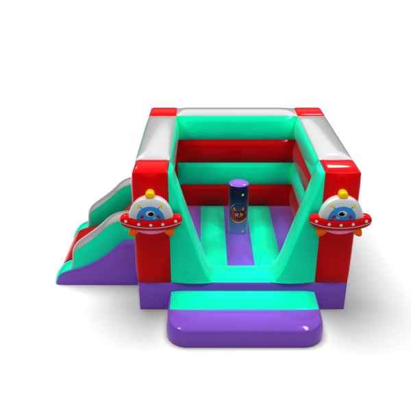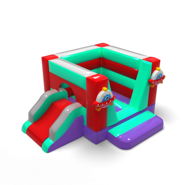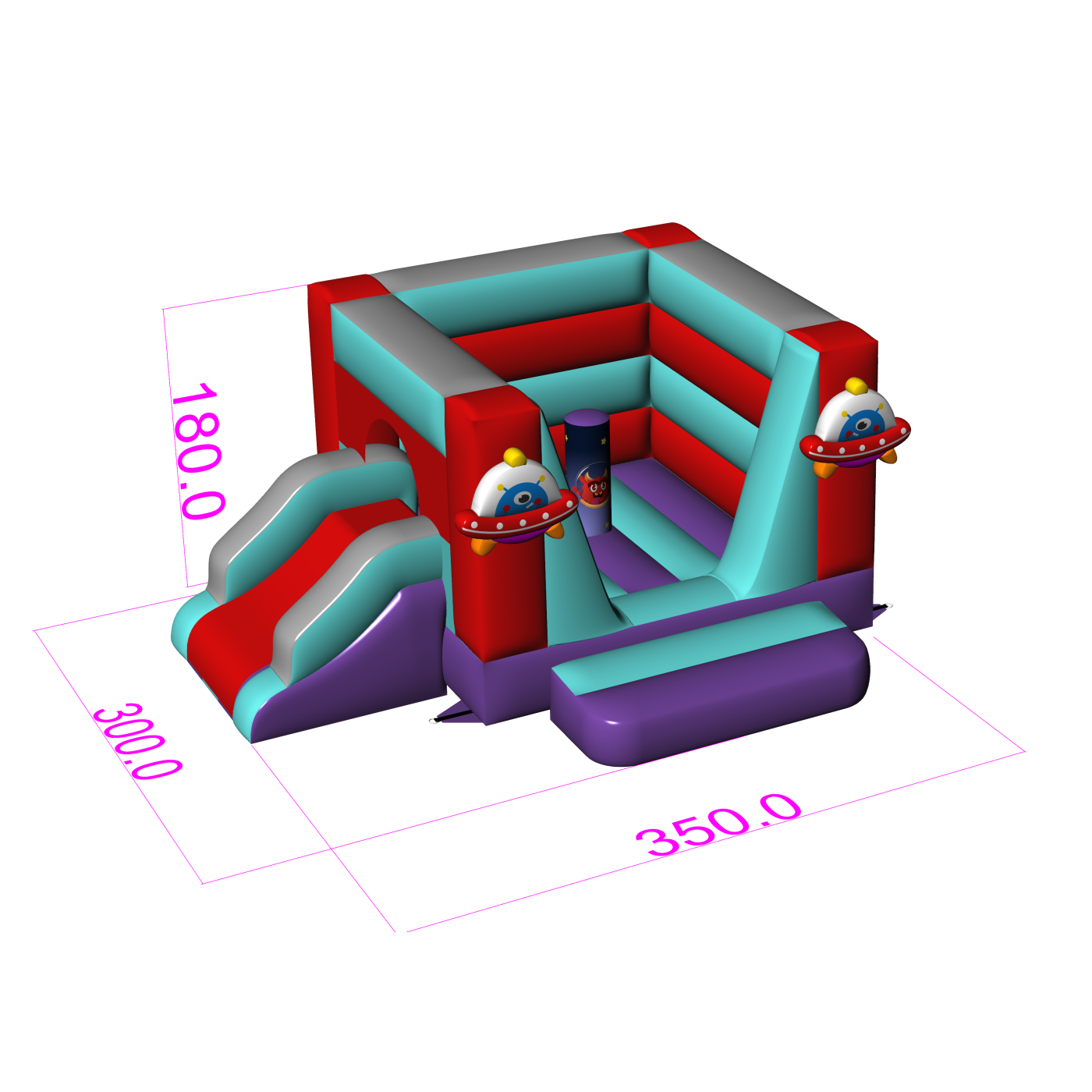 A térugráló csúszdával ellátott változata egy olyan kiegészítő attrakció, amely meghosszabbítja a játékidőt és ösztönzi a fizikai aktivitást. A színes elemek és a repülő csészealj motívumok barátságos hangulatot teremtenek, a kompakt méret pedig lehetővé teszi, hogy kültéren és beltéren egyaránt elhelyezhető legyen. Ez egy praktikus megoldás a HoReCa-ipar és a rendezvényszervezők számára, akik vonzó és biztonságos játszóteret szeretnének kínálni a gyerekeknek. Biztosítson modern fókuszpontot, amely könnyen igazítható a különböző rendezvényhelyszínekhez.