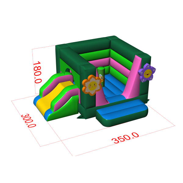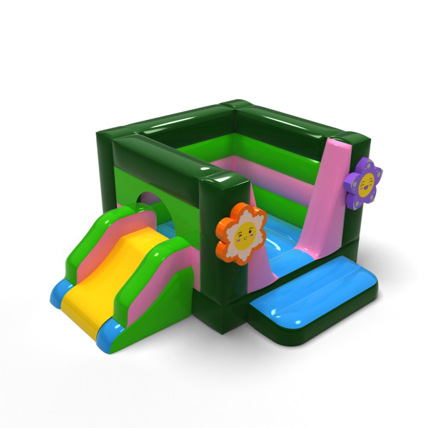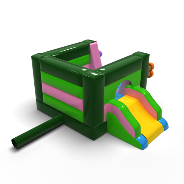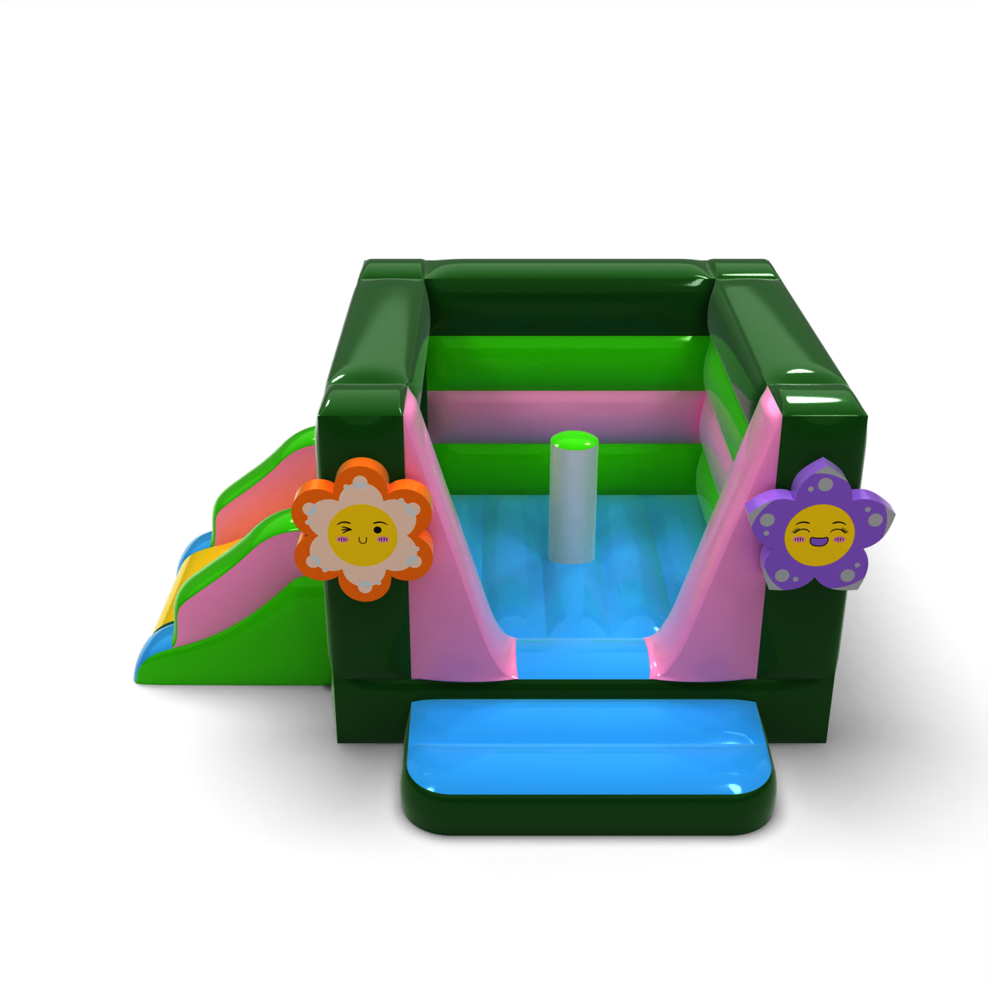 A rugós kialakítású csúszdás ugrálóvár az ugrálóteret egy további mozgáselemmel kombinálja. A virágos grafika és a vidám színvilág kiemeli az attrakció könnyed, barátságos hangulatát, amely ideális családi rendezvényekhez. Kompakt méreteinek köszönhetően az egység könnyen használható kül- és beltéren egyaránt, változatos és biztonságos szórakozást nyújtva a gyerekeknek. Egészítse ki kínálatát egy olyan attrakcióval, amely frissességet és energiát visz minden rendezvényre.