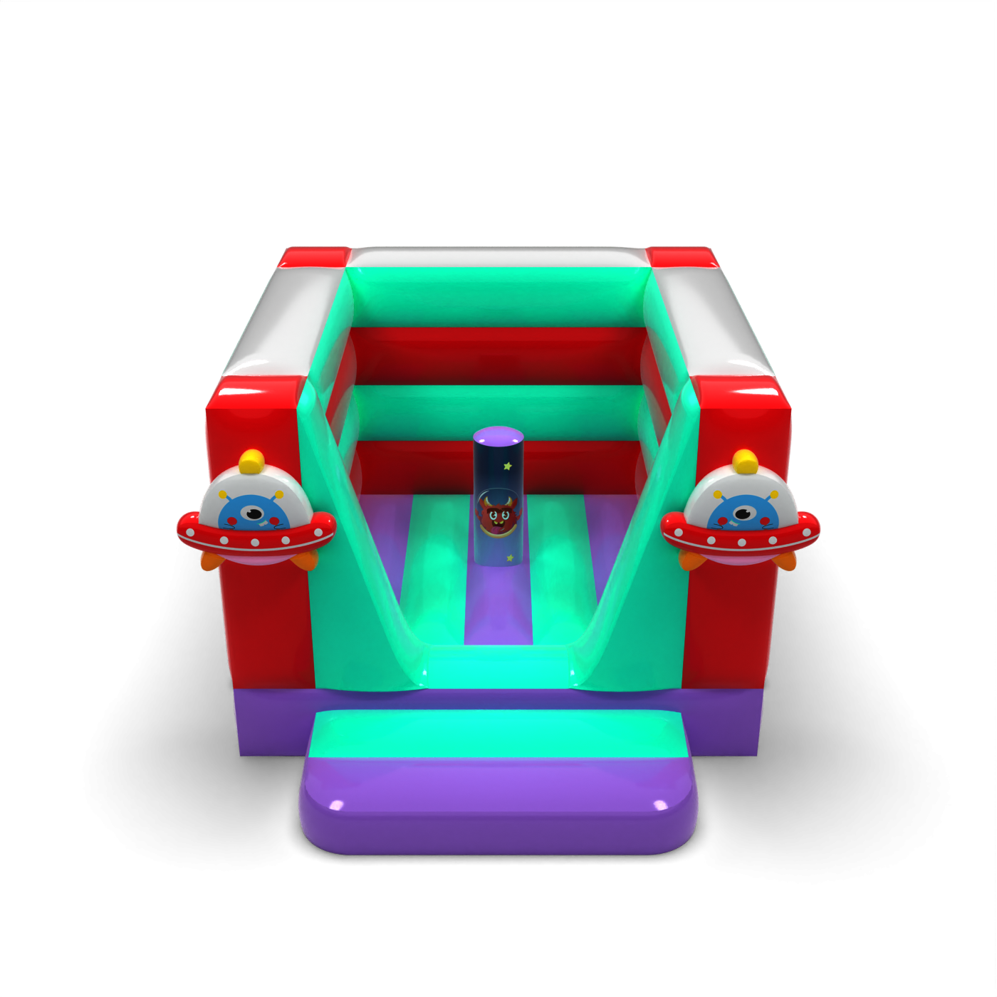 Az űrtémájú ugrálóvár egy kompakt attrakció, amely tökéletesen alkalmas szállodákba, üdülőhelyekre és meghitt családi rendezvényekre. A színes dizájn és az UFO-khoz kapcsolódó kiegészítők vonzzák a gyerekek figyelmét, és egyedi jelleget kölcsönöznek a térnek. A zárt kialakítás biztonságos játékkörnyezetet biztosít, az alacsony magasság pedig beltéri használatot is lehetővé tesz. Biztosítson egy modern fókuszpontot, amelyet könnyen hozzáigazíthat a különböző rendezvényhelyszínekhez.