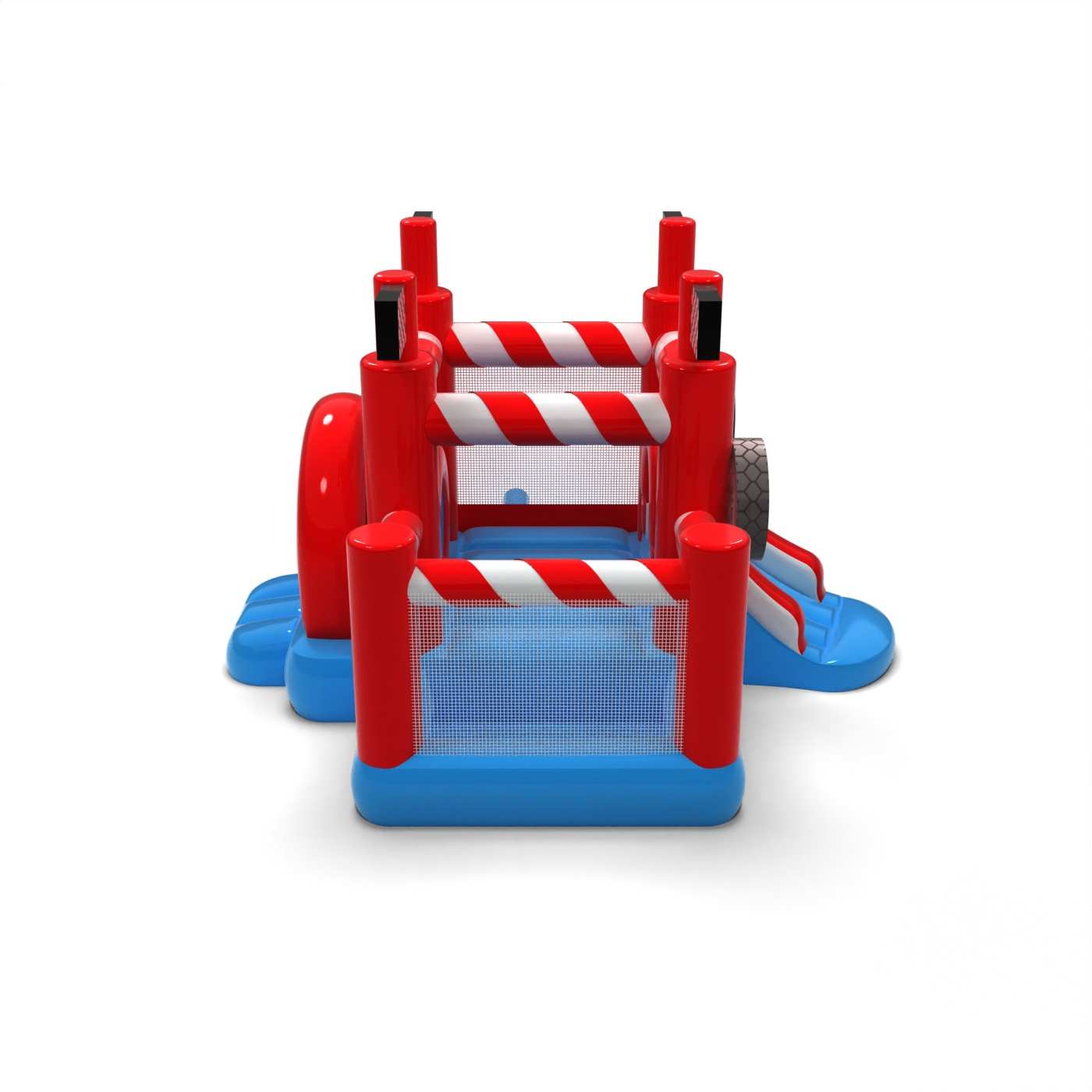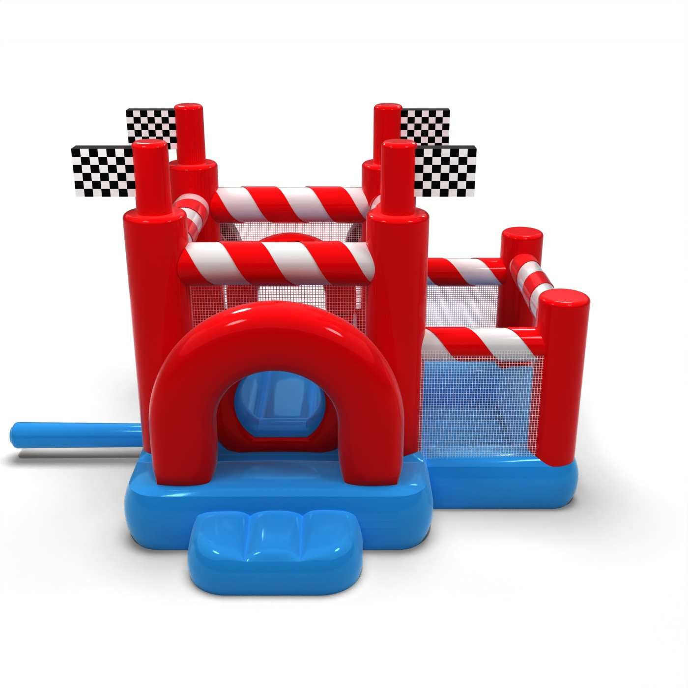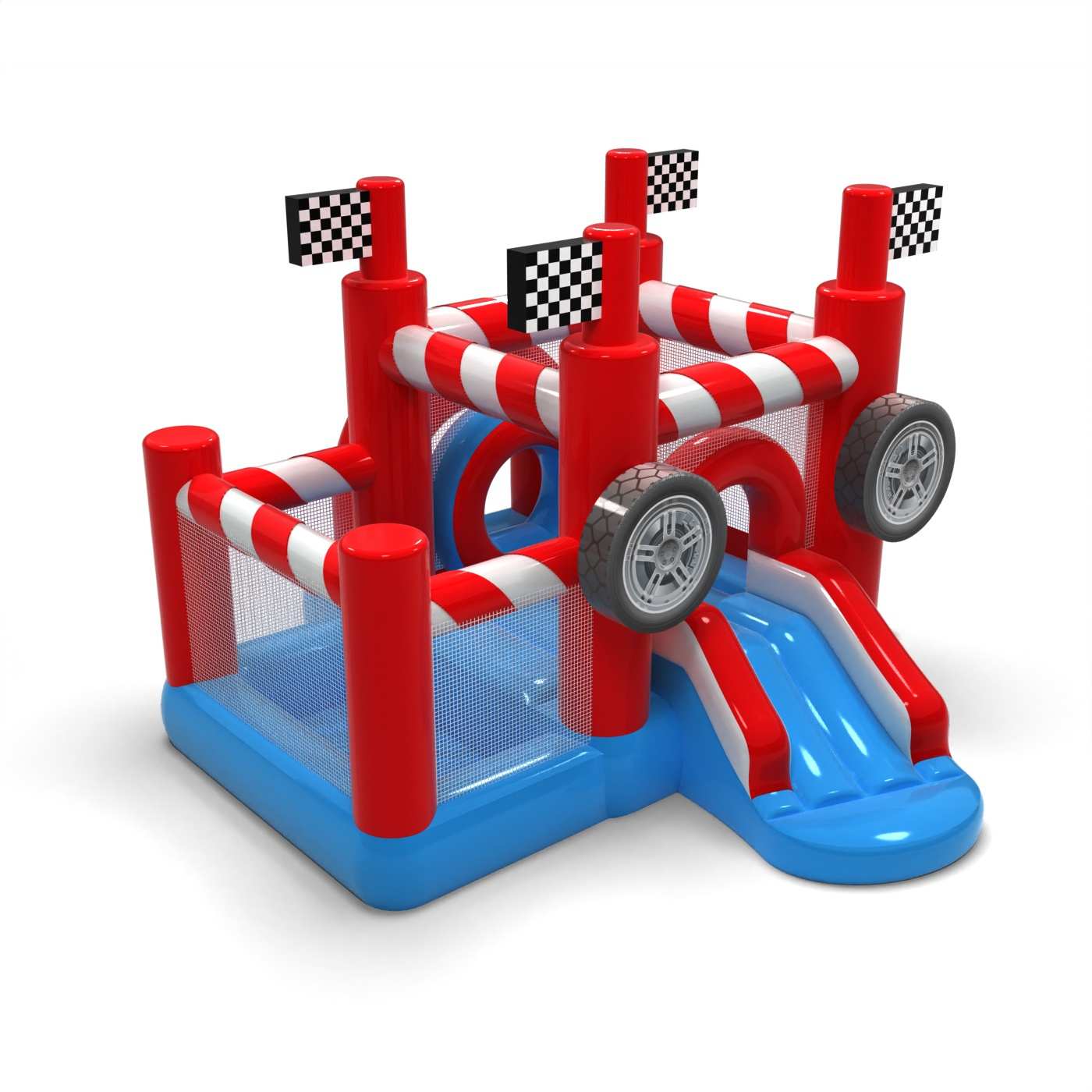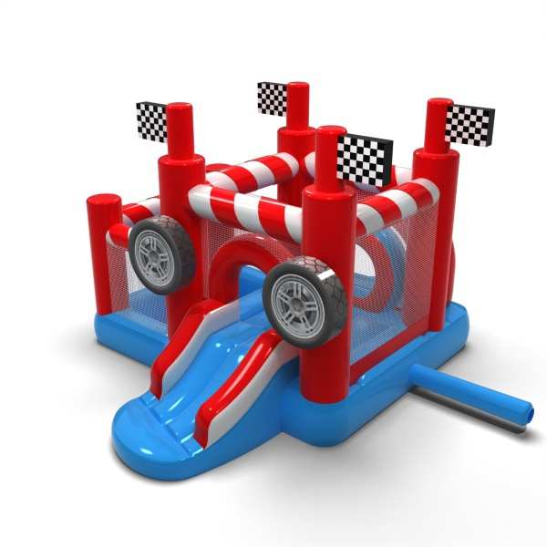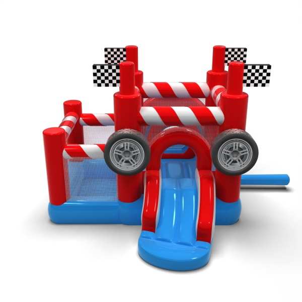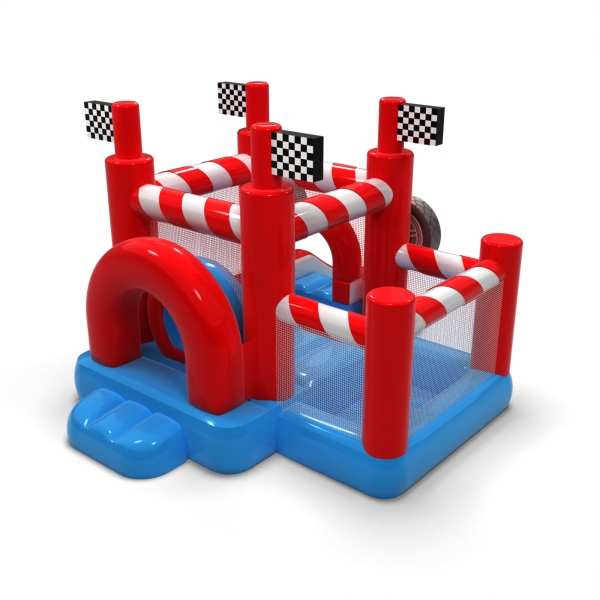 A sportos, a versenyzés világa által inspirált kialakítás dinamikus, de barátságos játékteret teremt a legkisebbek számára. Az ugrálós zóna és a száraz medence kombinációja lehetővé teszi a kisgyermekek számára, hogy aktívak legyenek, és biztonságosan felfedezzék a látványosságot. A motorizált vizuális részletek a versenypályával kapcsolatos asszociációkat keltenek, és már az első pillantástól kezdve izgalmas elemet jelentenek. A kompakt formátumnak köszönhetően a felfújható játék könnyen beilleszthető a különböző rendezvényterekbe. Az attrakció jól működik családi piknikeken, fesztiválokon és tematikus animációkban a legfiatalabb résztvevők számára.