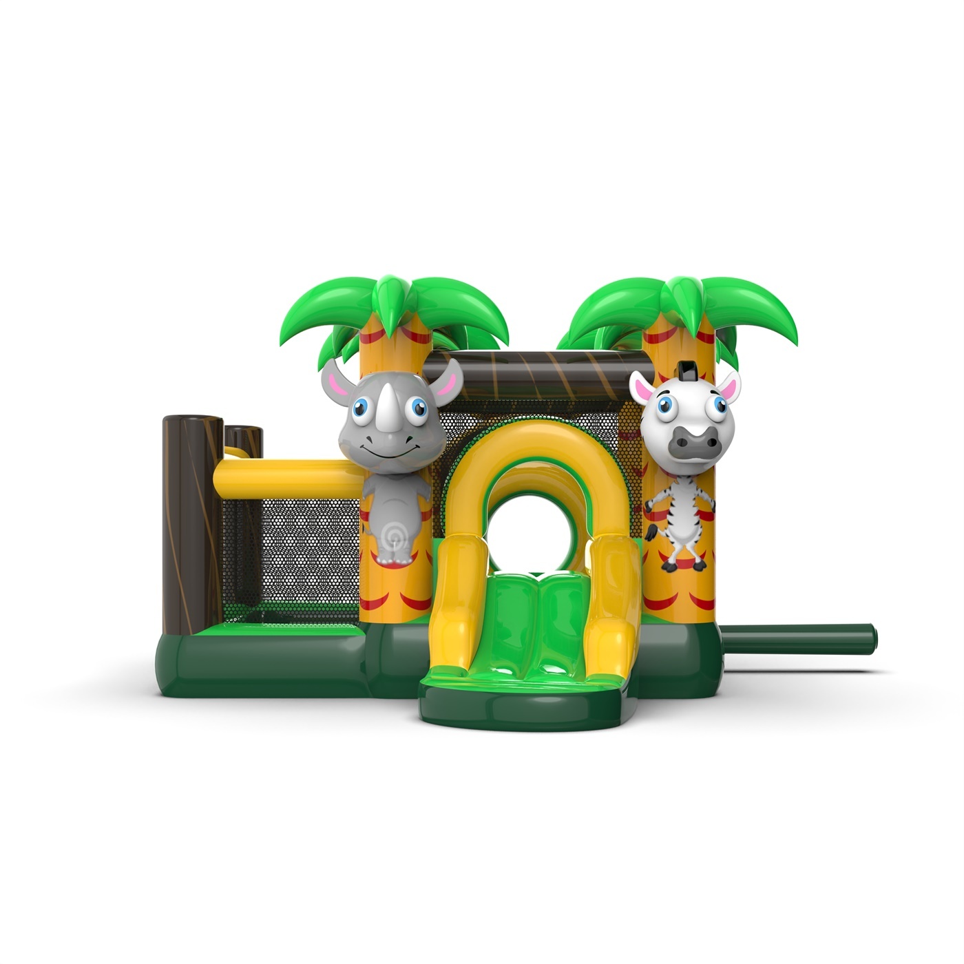 A dzsungel témájú, száraz medencével ellátott kis ugrálóvár tökéletes hely a vidám ugráláshoz és a szabadtéri játékhoz. A színes kialakítás és a vadon élő állatok motívuma arra ösztönzi a gyerekeket, hogy aktívan tevékenykedjenek, és felejthetetlen emlékeket szerezzenek barátaikkal. Tökéletes választás születésnapokra, fesztiválokra és egyéb rendezvényekre, ahol a gyerekek biztonságos környezetben engedhetik ki magukat.