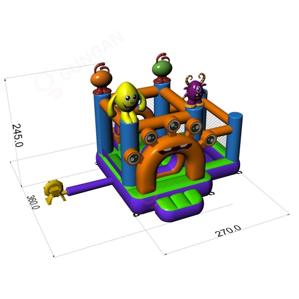 Egy kis ugrálóvár száraz medencével a gyermekek számára szörny-témában ideális attrakció a kicsik számára, akik szeretnék felfedezni a színes lények fantasztikus világát. A gyerekek élvezhetik az ugrálás örömteli szórakozását, és kedvenc szörnyeik szerepébe bújhatnak, a száraz medence pedig extra szórakozást nyújt. Tökéletes választás családi partikhoz, fesztiválokhoz és szabadtéri rendezvényekhez, felejthetetlen, mosolygós pillanatokat biztosítva.
