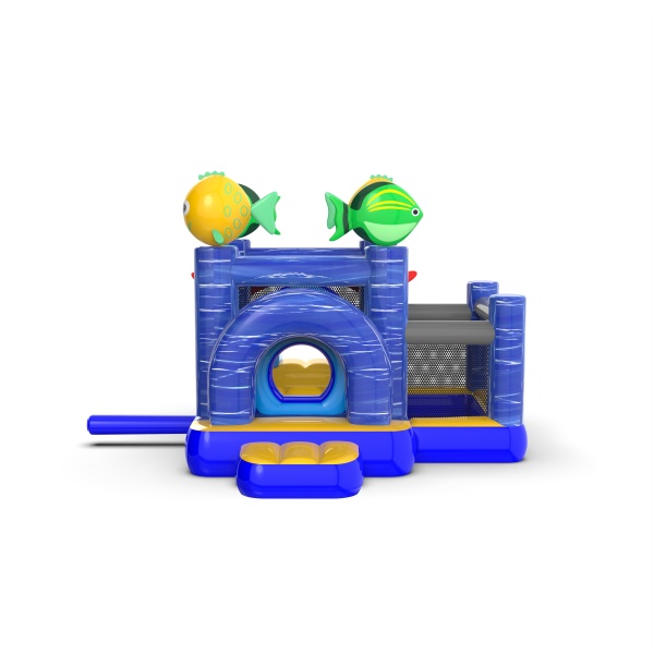 Egy kis ugrálóvár száraz medencével, tengeri témában, tökéletes attrakció a kicsik számára, amely a gyerekeket egy színes, kalandokkal teli víz alatti világba repíti. A vidám tengeri lényeknek köszönhetően a kicsik nemcsak ugrálhatnak, hanem biztonságos környezetben fejleszthetik motoros képességeiket is. Tökéletes választás a szabadtéri partikhoz a vidám és felejthetetlen emlékeket idéző szabadtéri játékokhoz!