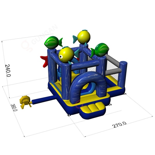 Mint minden felfújható attrakciónk, ez a termék is kiváló minőségű anyagokból készült – jelen esetben nagy szakítószilárdságú, új generációs PVC-ből. A Kis ugrálóvár száraz medencével gyerekeknek - tengeri téma mérete 3,6 m x 2,7 m x 2,4 m (hosszúság, szélesség és magasság). Teljesíti a EN 14960 biztonsági szabvány követelményeit, amelyet a felfújható szórakoztató eszközökre alkalmaznak. A légvárhoz ajánlott ventilátorokat a csomag tartalmazza. A legtöbb attrakciónkhoz hasonlóan ez is két év garanciával rendelkezik. A Gangaru gondoskodik róla, hogy Önnek minél kevesebb dolga legyen – a csomag része az összes szükséges rögzítőelem is (kötelek, cövekek). A terméket független szakértő vizsgálta be a biztonság szempontjából.