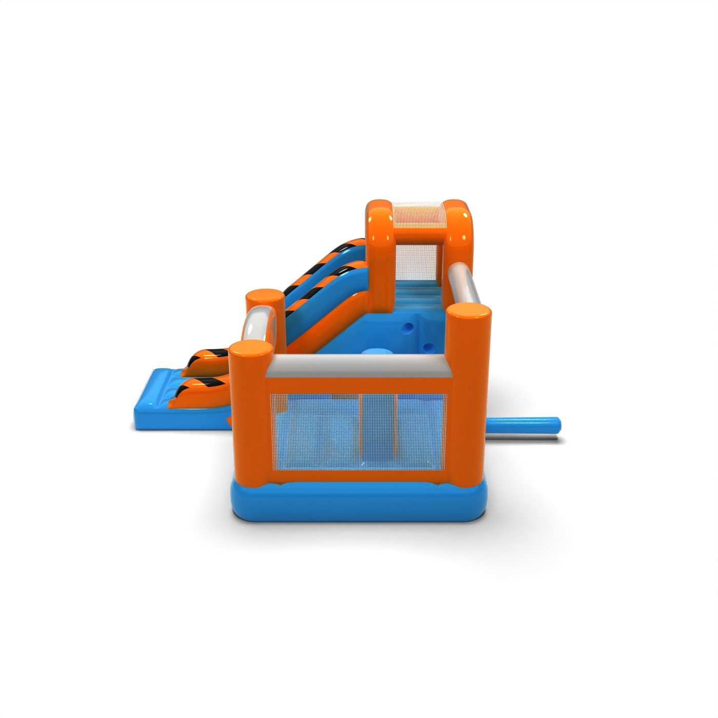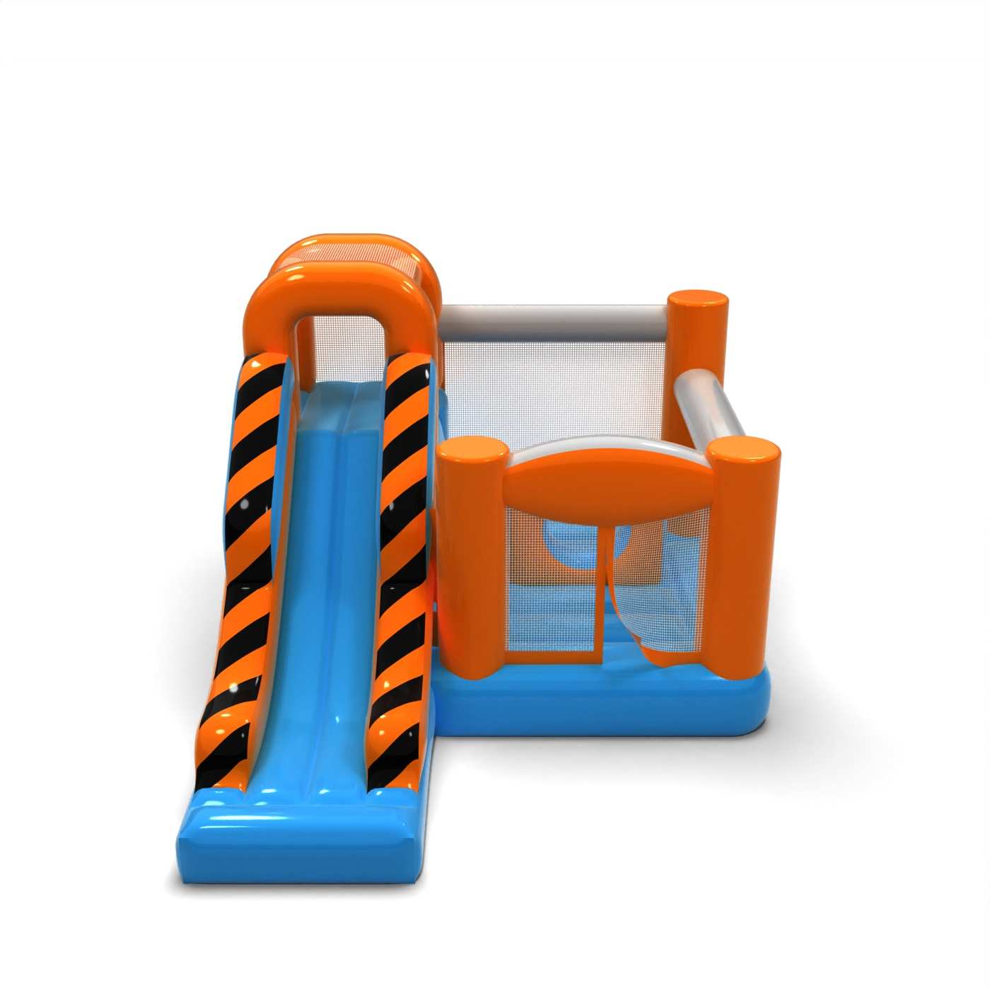A klasszikus kialakításnak és a sokoldalú formának köszönhetően ez a felfújható eszköz könnyen alkalmazkodik a különböző rendezvényekhez. Az ugrálás és a csúszda kombinációja változatos szórakozást és a résztvevők természetes forgását biztosítja a gyermekek számára. Az egyszerű esztétika lehetővé teszi, hogy az attrakció családi rendezvényekbe és hivatalosabb produkciókba egyaránt beilleszkedjen. Praktikus választás olyan kölcsönző cégek számára, amelyeknek széles körű felhasználási lehetőségekkel rendelkező felszerelésre van szükségük. A modell alkalmas fesztiválok, piknikek és vállalati rendezvények lebonyolítására, külön gyermekeknek kialakított területtel.