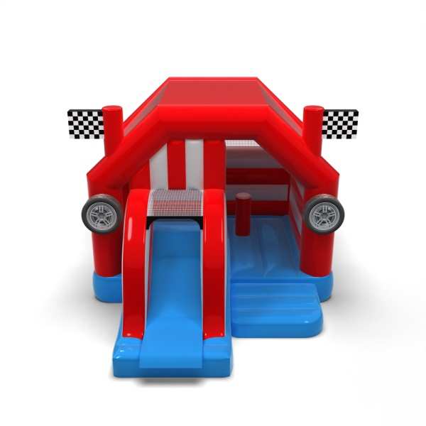 A versenypálya ihlette forma kifejező és dinamikus, mozgással és energiával teli játékteret hoz létre. Az ugrálóterület és a csúszda kombinációja arra ösztönzi a gyerekeket, hogy biztonságos, játékos formában legyenek aktívak és versenyképesek. Az autós dizájn vonzza a figyelmet, és azonnal asszociációkat kelt a versenyzés világával. Azoknak a szervezőknek ajánljuk, akik kifejezetten sportos jelleget szeretnének adni a gyermekeknek szánt területnek. Az attrakció ideális fesztiválokhoz, családi piknikekhez és tematikus szabadtéri rendezvényekhez.