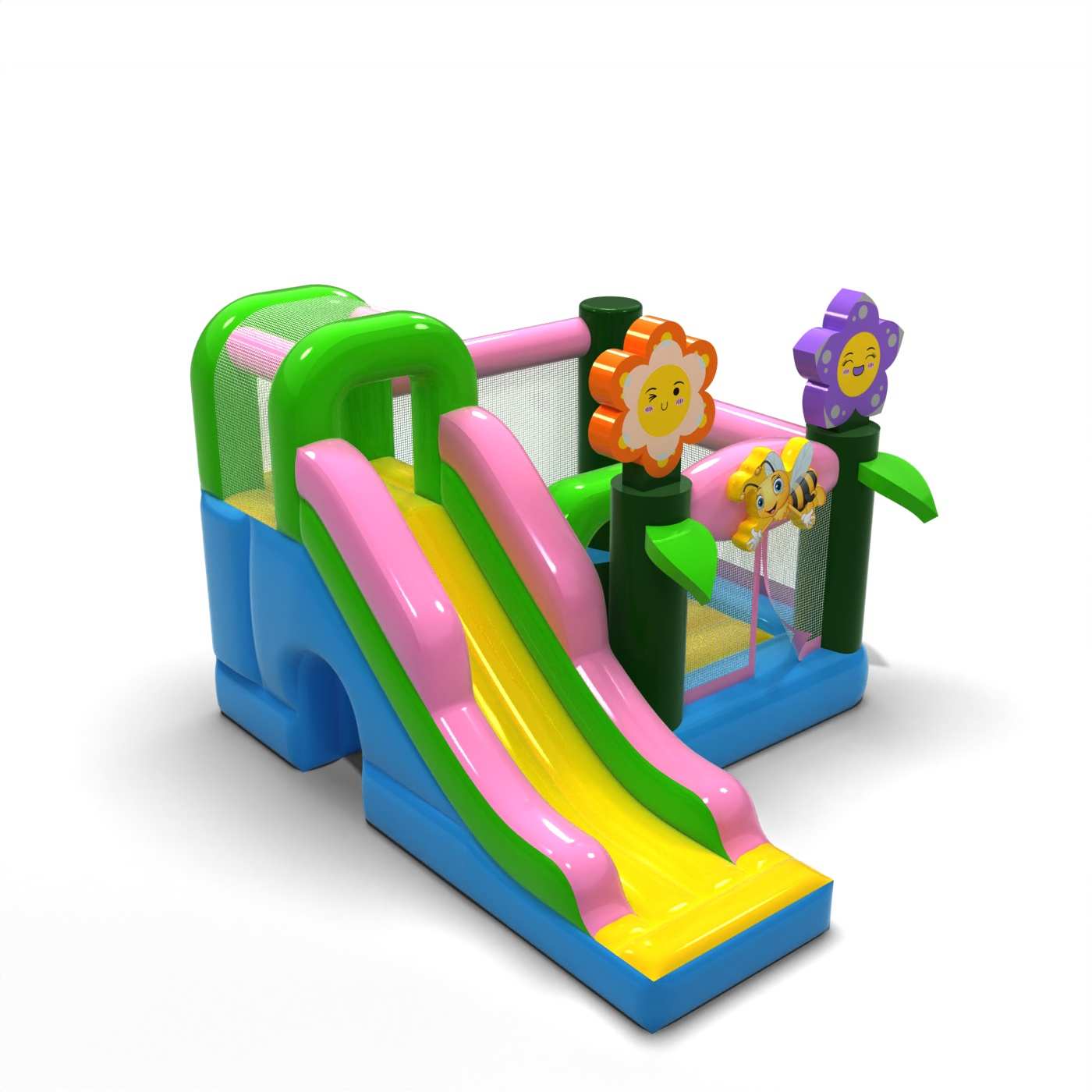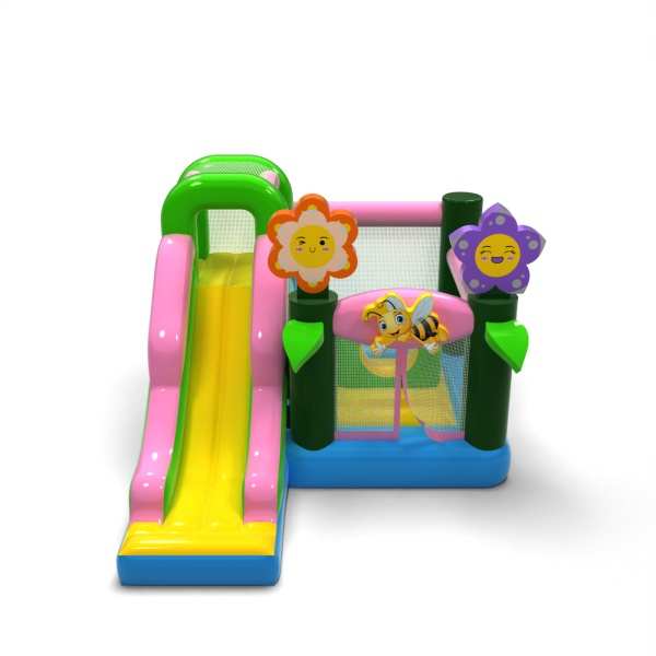 A tavaszi hangulat és a pasztellszínű design könnyed, vidám jelleget kölcsönöz ennek a látványosságnak, amely ideális a fiatalabb résztvevők számára. Az ugrálás és a csúszda kombinációja változatossá teszi a szórakozást, és lehetővé teszi a gyermekek számára, hogy aktívak legyenek, anélkül, hogy ez egyhangú lenne. A természetes grafikai motívumok friss hangulatot teremtenek, és jól illeszkednek a szabadtéri rendezvényekhez. Ez egy praktikus lehetőség a bérbeadó cégek számára, amelyek sokoldalú felfújható játékot keresnek a tavaszi/nyári szezonra. A modell bizonyítani fog fesztiválokon, piknikeken és családi animációkban, ahol fontos a forma könnyedsége és a barátságos, szórakoztató légkör.