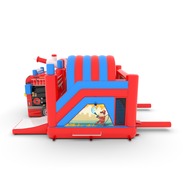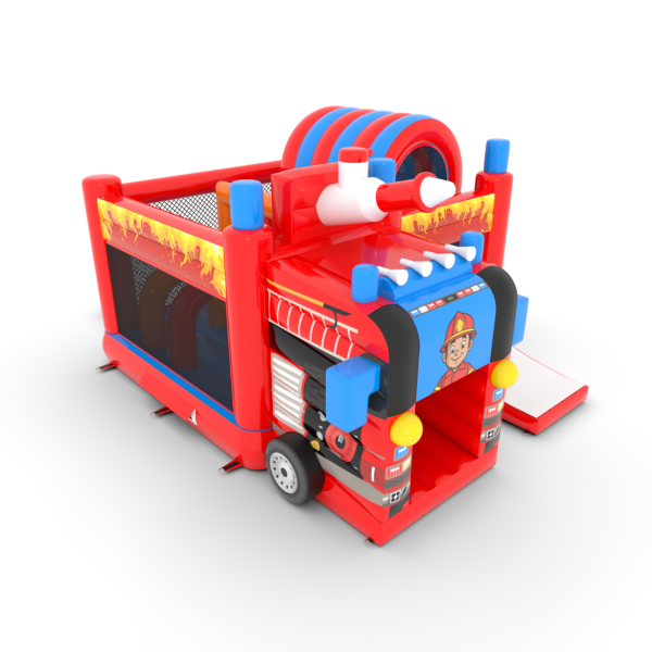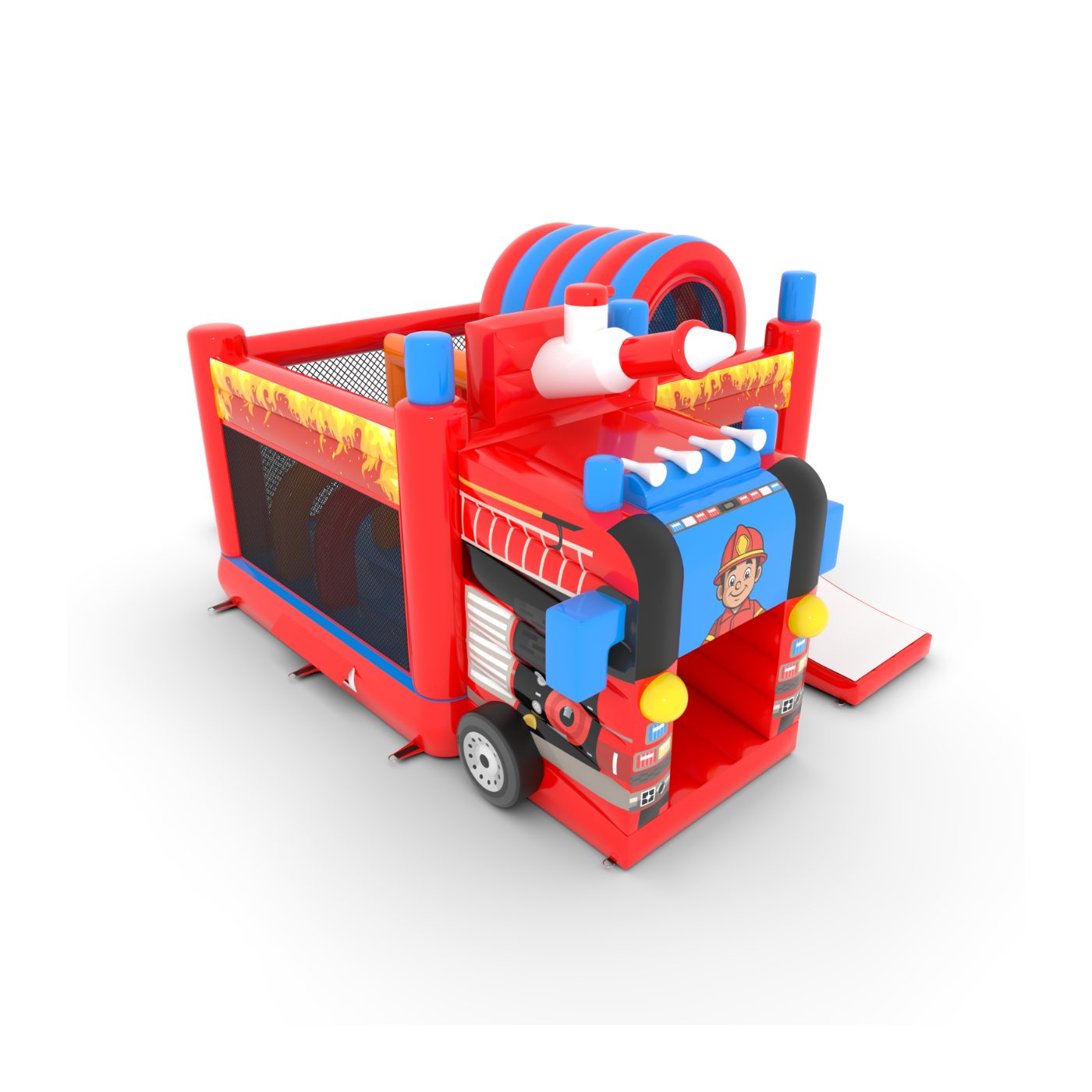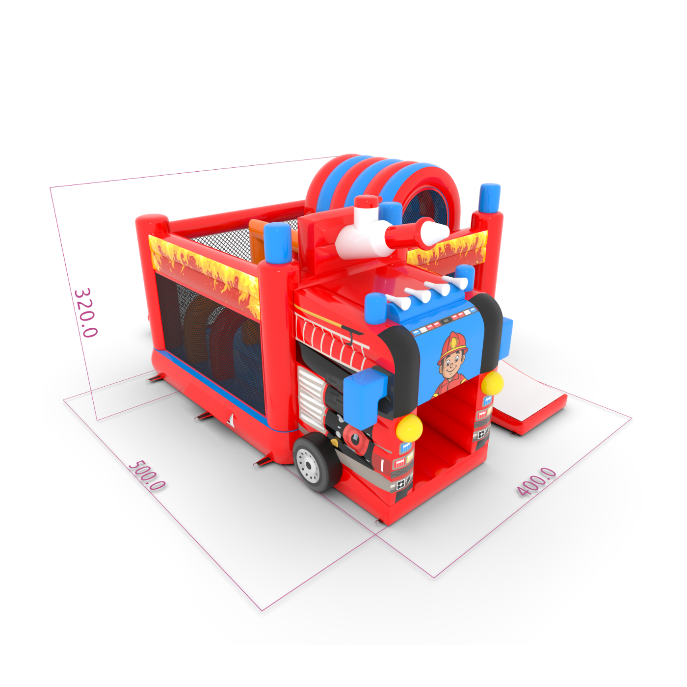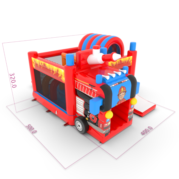 A tűzoltóautó formájú ugrálóvár izgalmas attrakció a gyerekek számára! Az olyan dinamikus elemek, mint az alagutak és az akadályok aktív és kreatív szórakozást nyújtanak. Tökéletes választás tematikus rendezvényekre, fesztiválokra és családi bulikra.