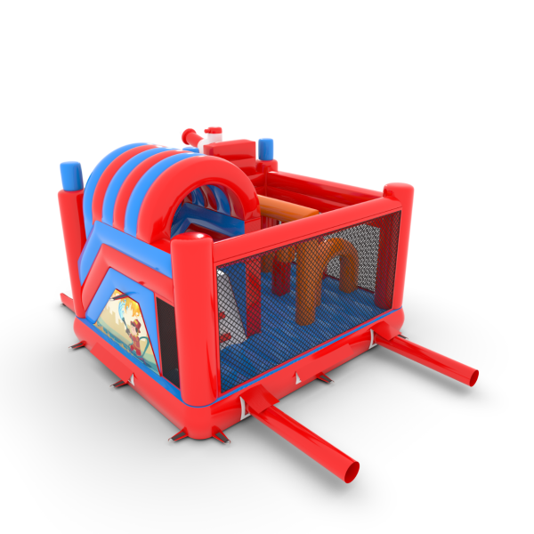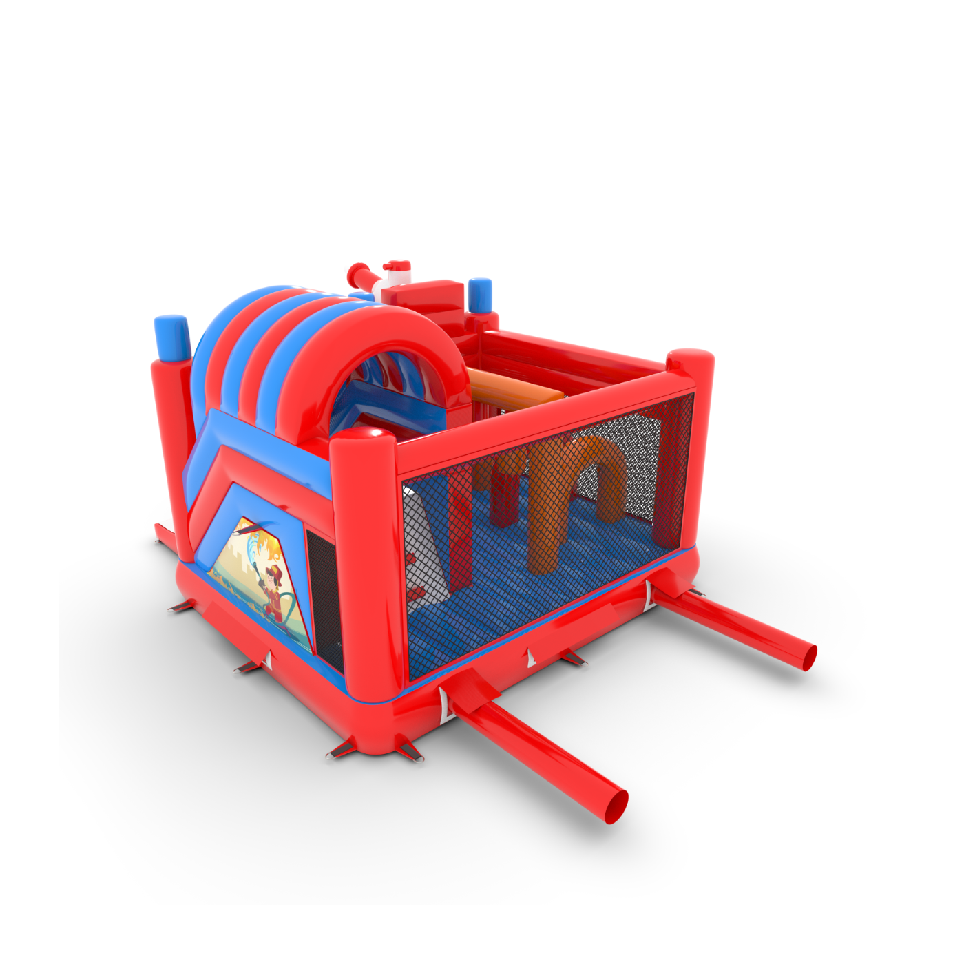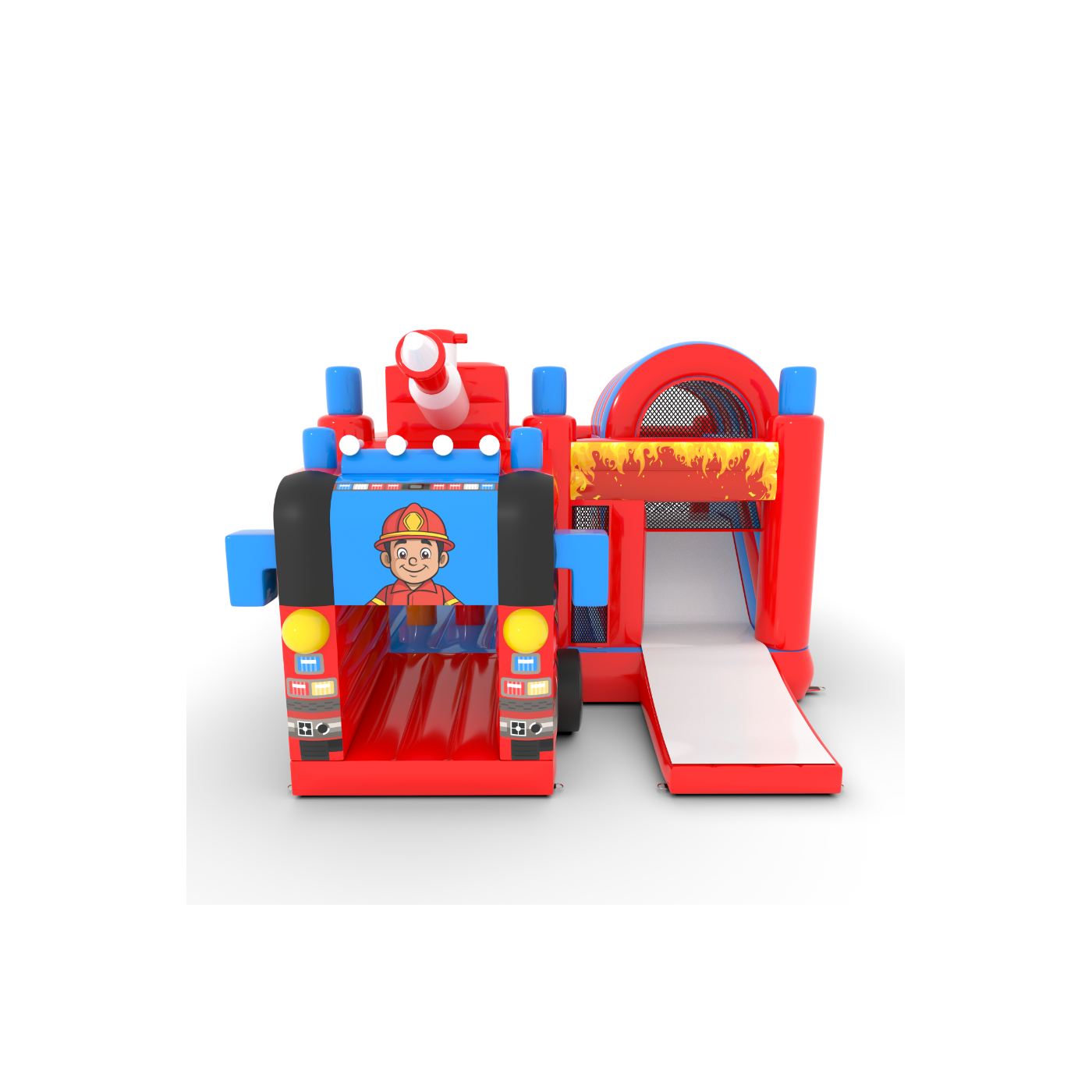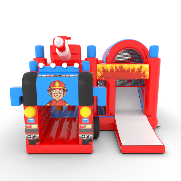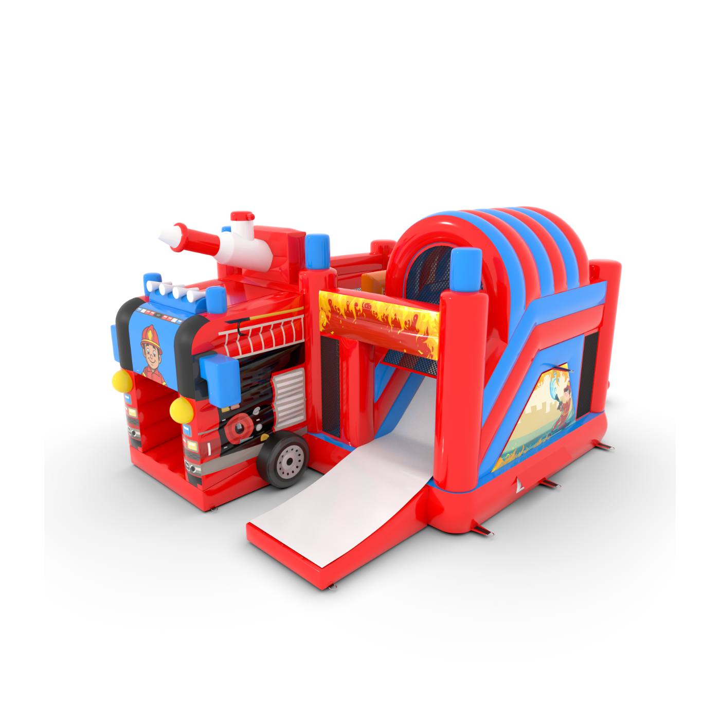 A tűzoltóautó formájú ugrálóvár izgalmas attrakció a gyerekek számára! Az olyan dinamikus elemek, mint az alagutak és az akadályok aktív és kreatív szórakozást nyújtanak. Tökéletes választás tematikus rendezvényekre, fesztiválokra és családi bulikra.