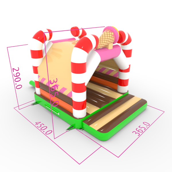 A 4,5x3,6 m-es ugrálóvár édes cukorkás témában egy olyan attrakció, amely minden gyermeket elragadóan fog szórakoztatni! A színes nyalókák és a fagylalt még varázslatosabbá teszik a szórakozást. Ideális választás rendezvényekre, ünnepségekre vagy születésnapokra.