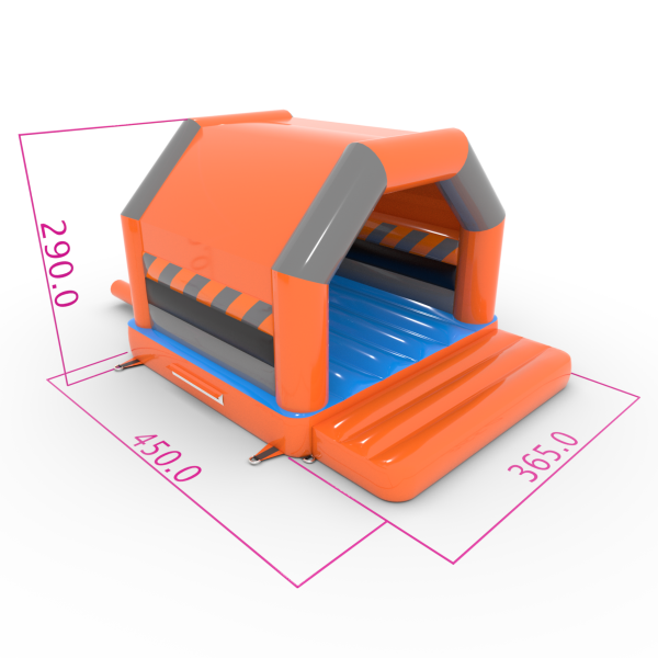 A 4,5x3,6 m-es ugrálóvár klasszikus, minimalista kialakítású, sokoldalúan felhasználható attrakció a legkülönbözőbb rendezvényeken. A visszafogott színek és a robusztus szerkezet jól használható vállalati rendezvényeken, fesztiválokon vagy magánpartikon.