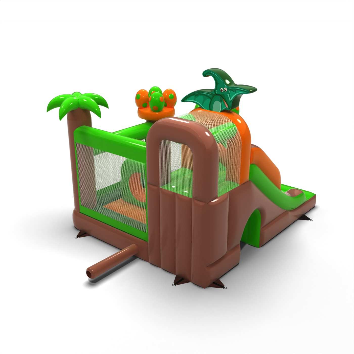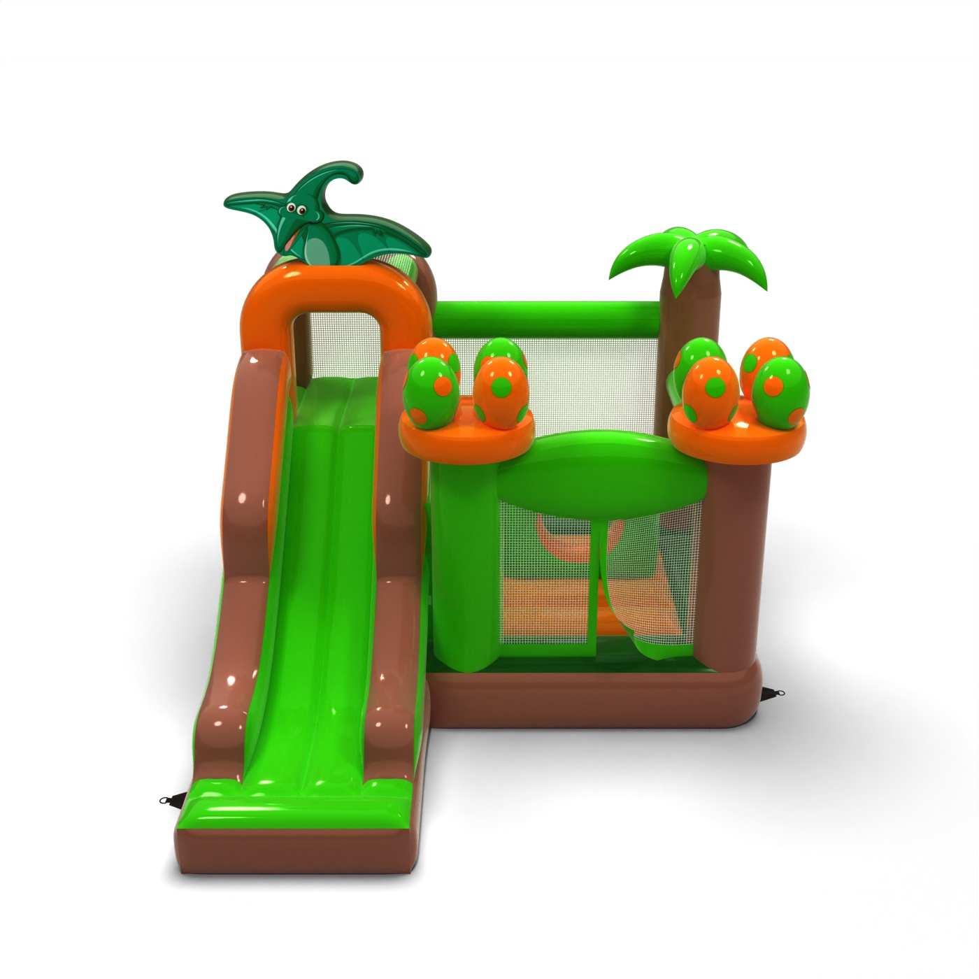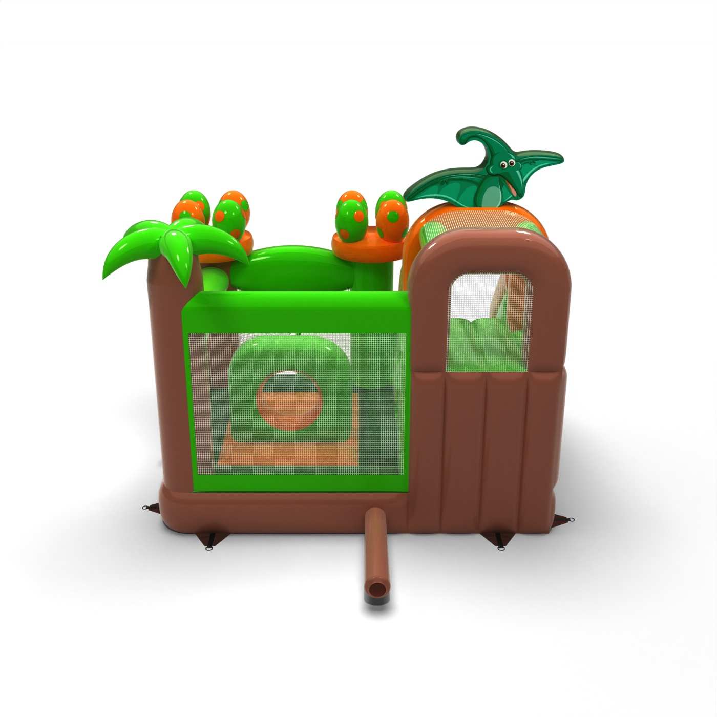 A dinoszaurusz témájú kis kastély a legfiatalabb résztvevőkre szabott javaslat. Az egyszerű, világos forma lehetővé teszi a gyermekek számára, hogy gyorsan elkezdjenek játszani, animáció nélkül. A dinoszaurusz grafika karaktert és barátságos energiát kölcsönöz az attrakciónak. Jó választás olyan kölcsönző cégek számára, amelyek könnyű, mobil felfújható légvárat keresnek rövid produkciókhoz. A modell ideális gyermekterületek, családi piknikek és meghitt szabadtéri rendezvények számára.