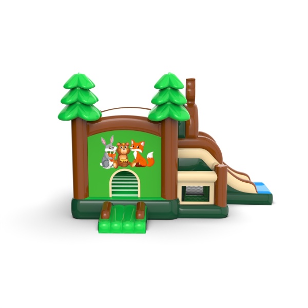 A felfújható vár erdei kombó egy csodálatos attrakció, amely arra invitálja a gyerekeket, hogy biztonságos és barátságos környezetben fedezzék fel a természet szépségét. A zöld fákkal és színes növényekkel körülvett felfújható játék arra ösztönzi a kisgyermekeket, hogy aktívan játsszanak, ugráljanak és interakcióba lépjenek társaikkal. Tökéletes választás olyan szabadtéri rendezvényekhez, amelyek ötvözik a szórakozást az ökológiáról és a természetről való tanulással, felejthetetlen, mosolygással és képzelőerővel teli pillanatokat teremtve!