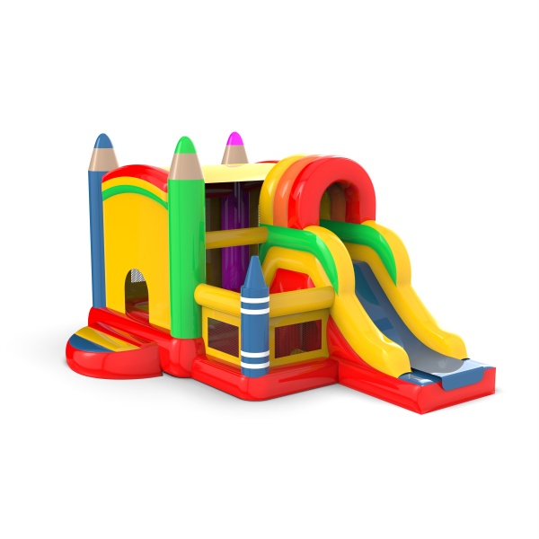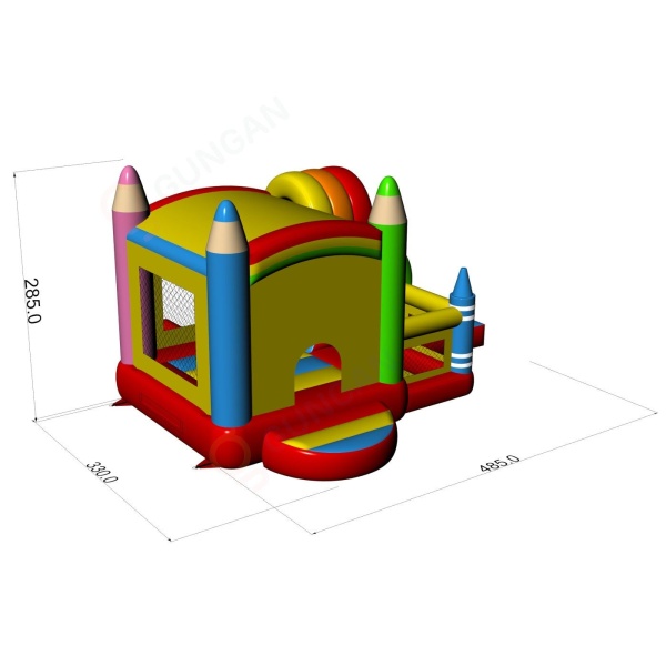A zsírkréta kombinált ugrálóvár egy színes attrakció, amely a gyerekeket egy olyan szórakoztató világba repíti, amely a kedvenc könyveik színezésére emlékeztet. A szivárvány színeivel a kicsik ugrálhatnak és játszhatnak, biztonságos környezetben fejleszthetik képzeletüket. Tökéletes választás a szabadtéri partikhoz, és felejthetetlen örömteli és mosolygós pillanatokat szerez a gyerekeknek!
