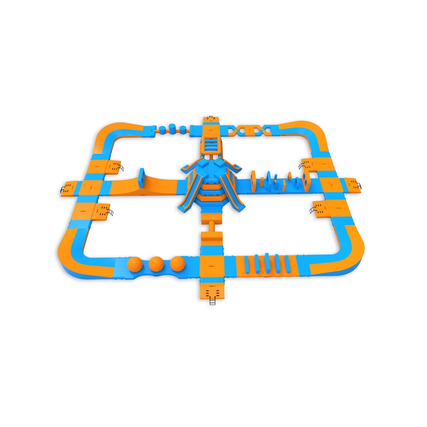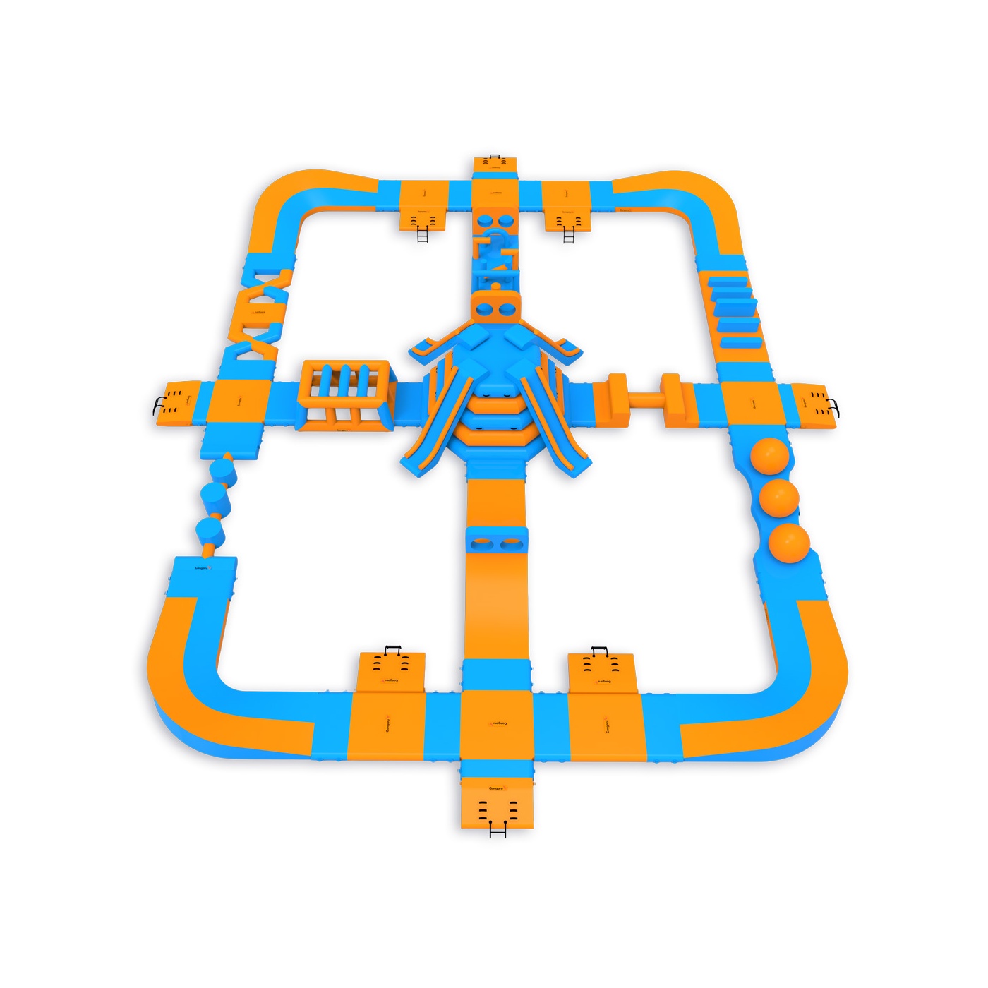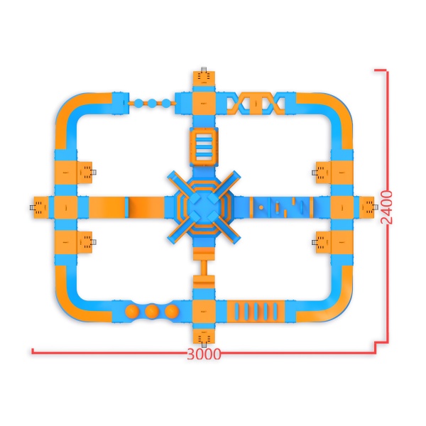 Négy csúszda a park közepén - ez elég ahhoz, hogy a résztvevők figyelmét sokáig lekösse. A központi torony uralja az elrendezést, míg a Wipeout labdákkal, akadályokkal és egyéb akadályokkal ellátott, körbejárható útvonal minden résztvevő számára biztosítja az aktivitást - kortól és fittségi szinttől függetlenül. Egyszerre 76 fő befogadására tervezték, így jól működik közepes méretű vízfelületeken, ahol fontos, hogy a vendégek széles rétegei számára legyenek elérhetőek az attrakciók.