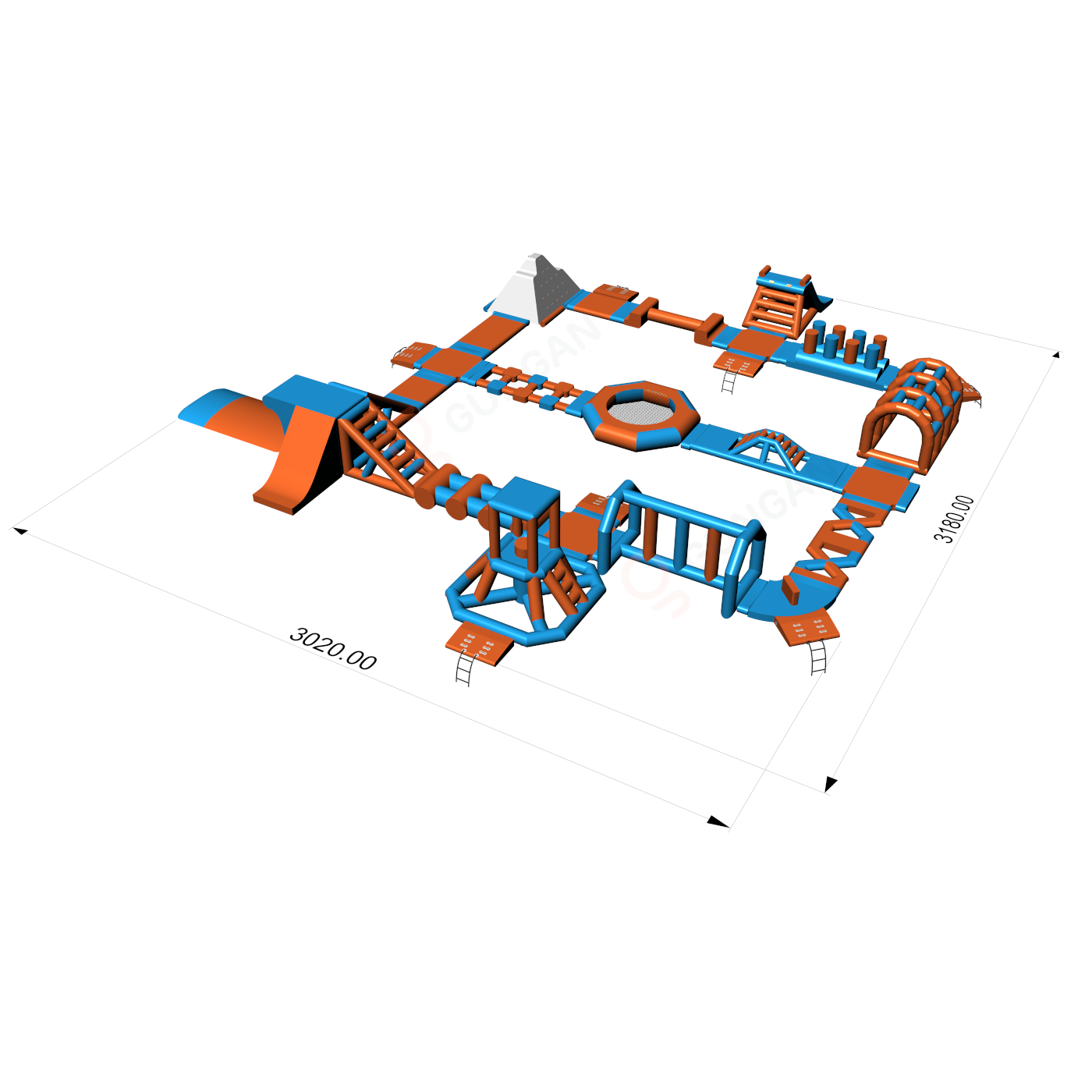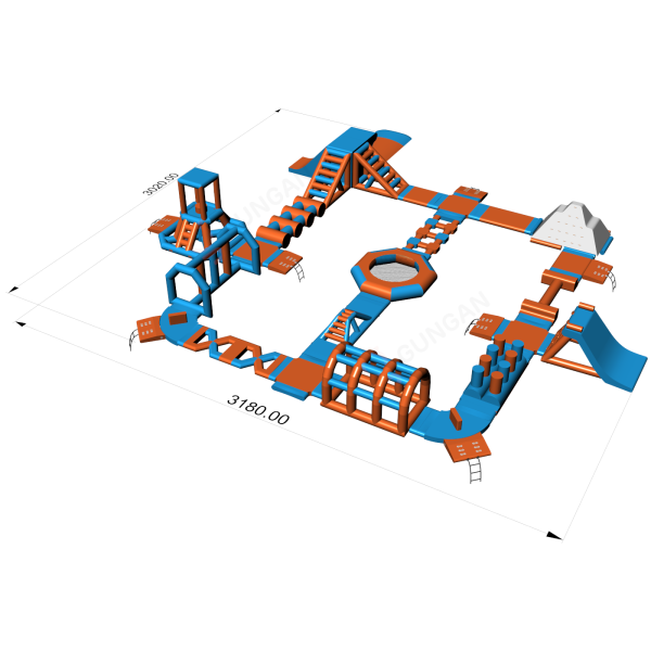A Zeta felfújható vízi park egy átfogó attrakció, amely különböző akadályokat, csúszdákat és vízi játéktereket ötvöz. Szabadtéri rendezvényekre és nagy csoportok számára tervezték, és minden korosztály számára kínál aktivitást és szórakozást. Tökéletes választás szabadtéri rendezvényekhez, dinamikus kihívásokat és vízi izgalmakat kínál.
