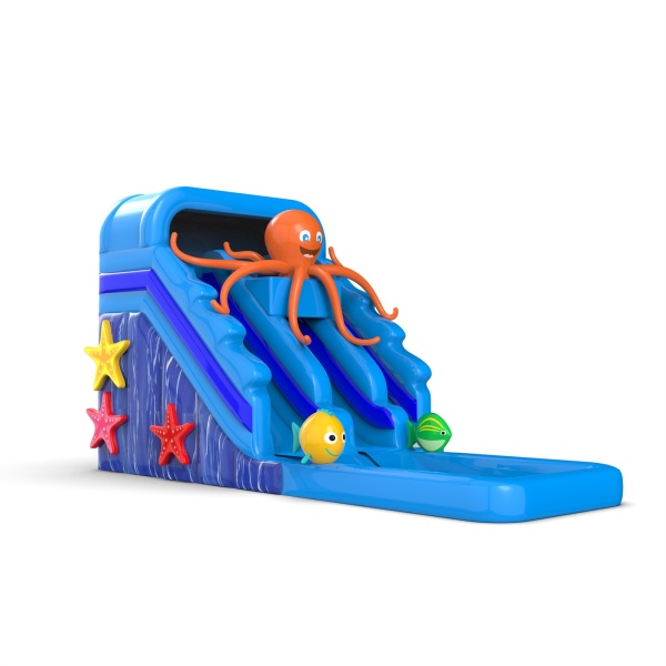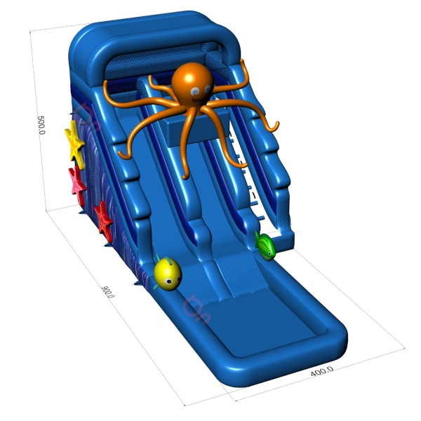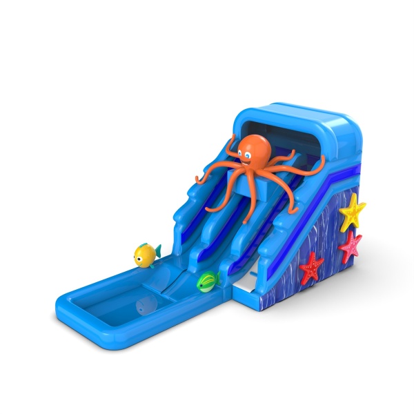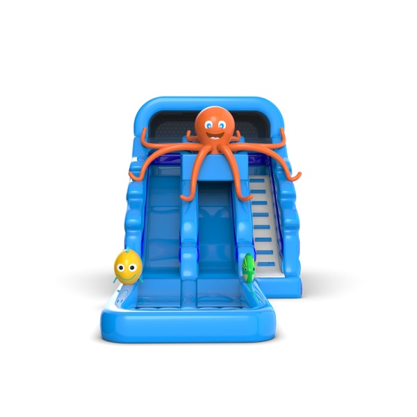 Felfújható vízicsúszda polippal kiváló attrakció gyerekek, tinédzserek és felnőttek számára egyaránt. A vízi felfújható játékok számos színben és tematikában elérhetők. A felfújható vízi csúszdák remek szórakozást nyújtanak minden résztvevőnek a hosszú nyári napokon. Ezek az attrakciók igazi slágerei minden vízi vidámparknak. Élvezd a szórakozást barátokkal és ismerősökkel – egy ilyen csúszda még élvezetesebbé teszi a vízparton vagy homokos strandon eltöltött időt a családdal.