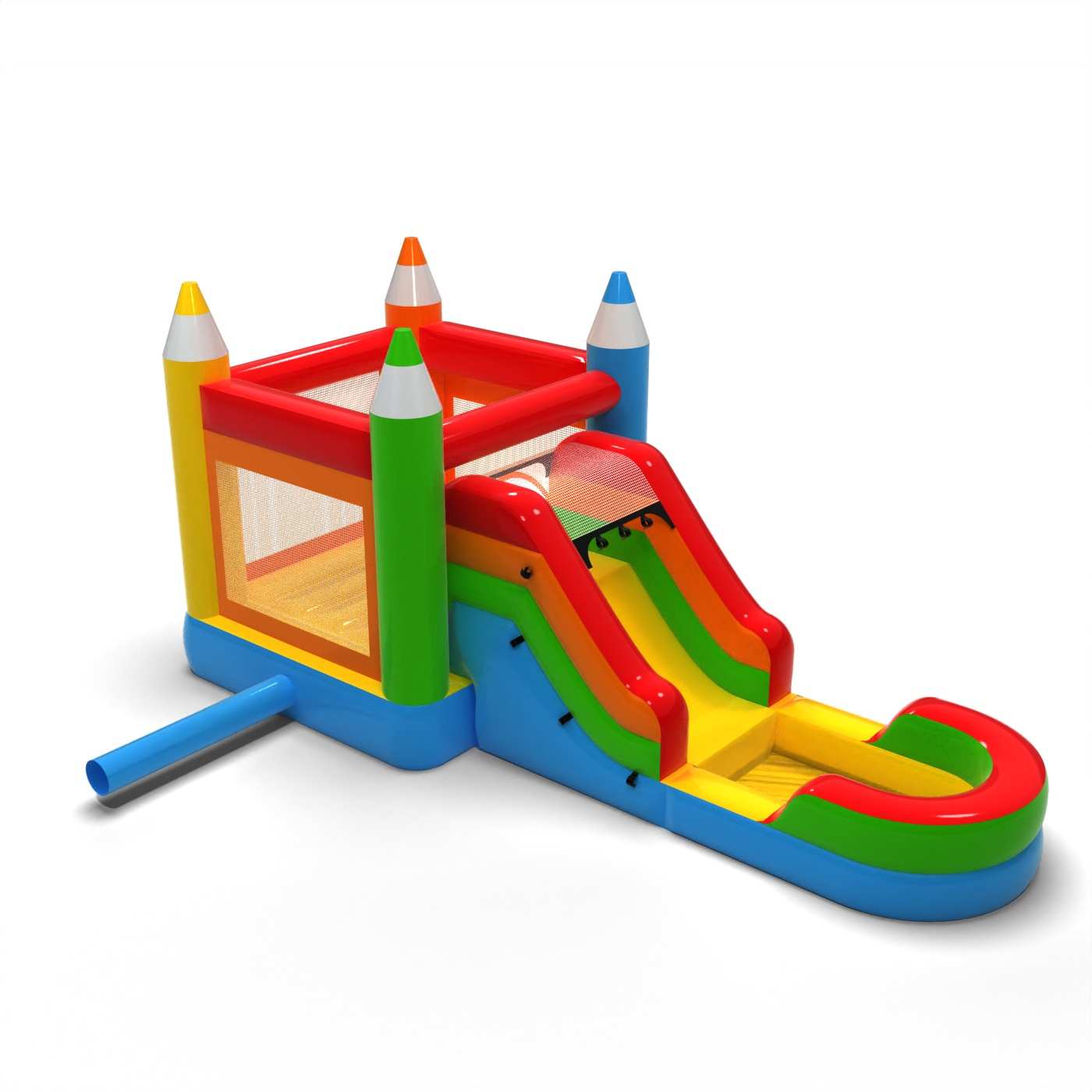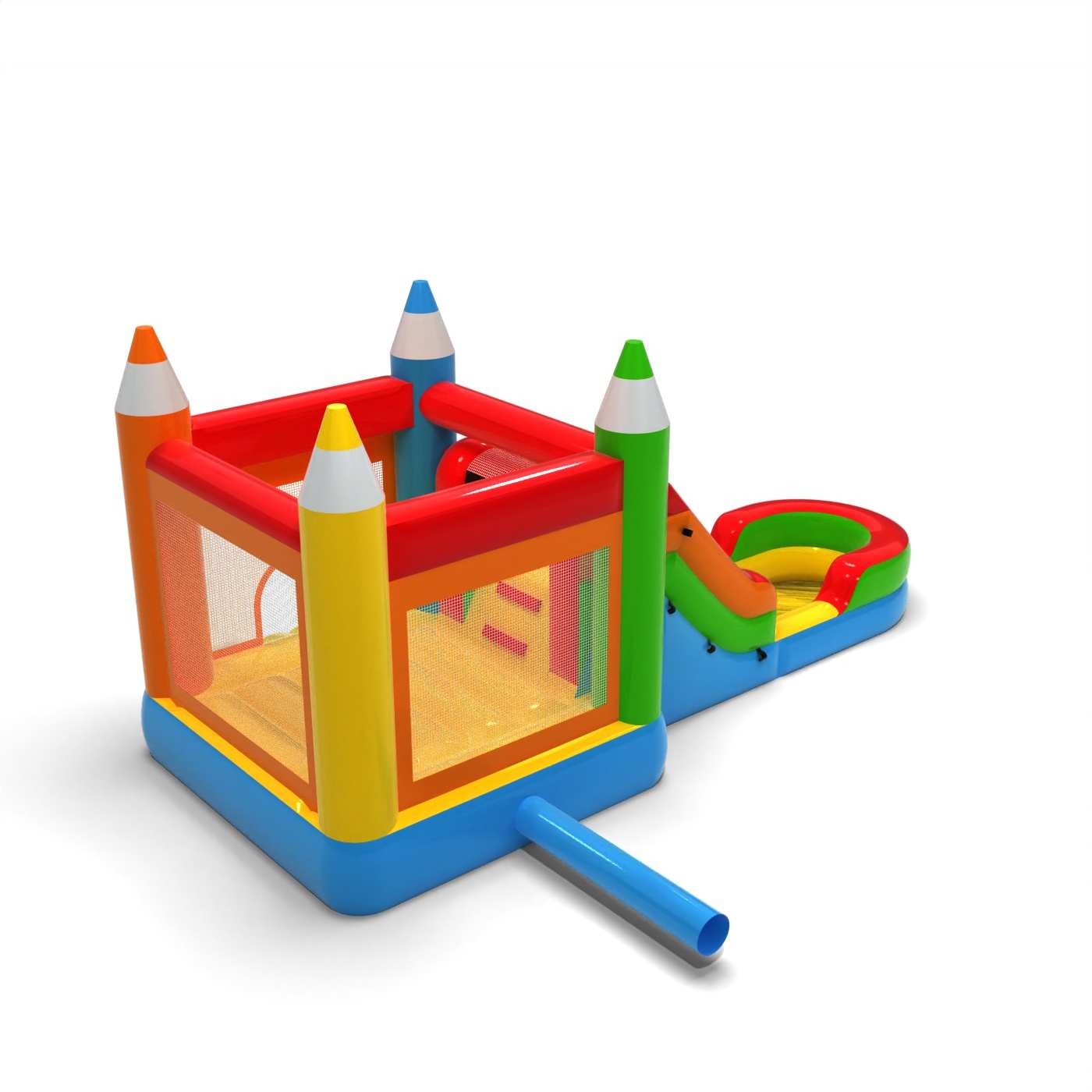 A felfújható játékok gyártásához tartós anyagokat használunk: TPU-t vagy PVC-t, amelyek kiemelkedő szakítószilárdsággal és viszonylag alacsony súllyal rendelkeznek.