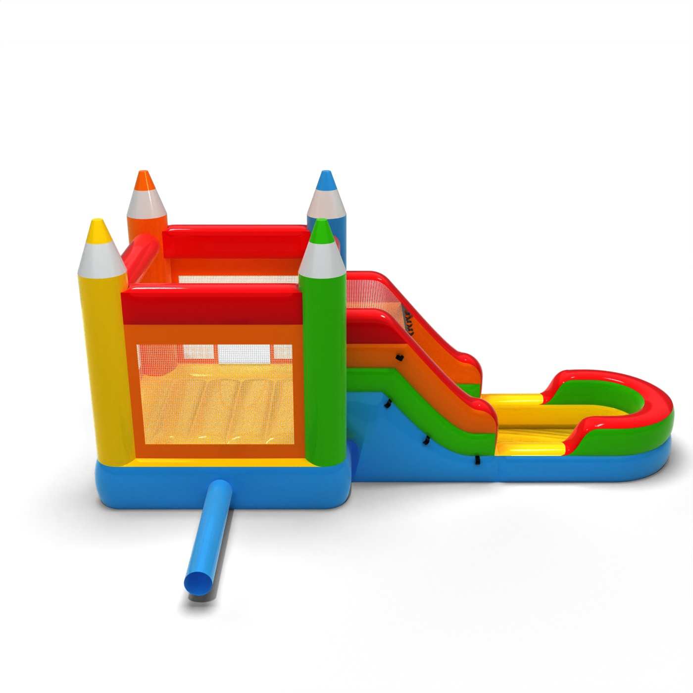 A vizes játék és a krétatábla stílus kombinációja egy könnyed nyári attrakciót hoz létre, amely kifejezetten kreatív jellegű. Az ugráló- és csúszdazóna mozgásban tartja a gyerekeket és hűsíti őket a meleg napokon. A pasztellszínek és a jellegzetes krétaformák barátságos, nyaralós megjelenést kölcsönöznek az egésznek. Ez egy érdekes ajánlat a bérbeadó cégek számára, amelyek szezonális vízi attrakciókkal bővítik kínálatukat. A modell hasznosnak bizonyul majd a nyári piknikeken, fesztiválokon és szabadtéri családi rendezvényeken.